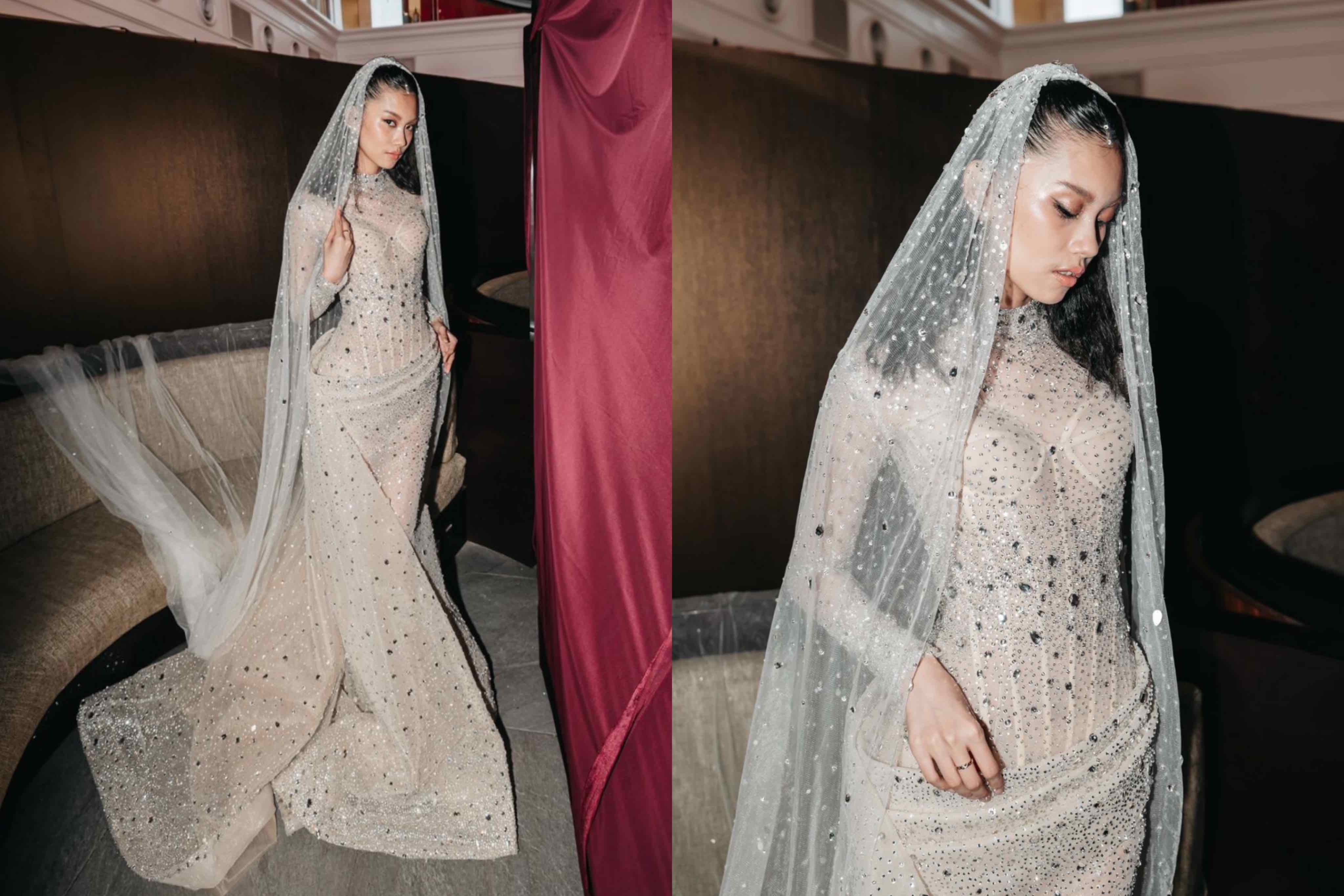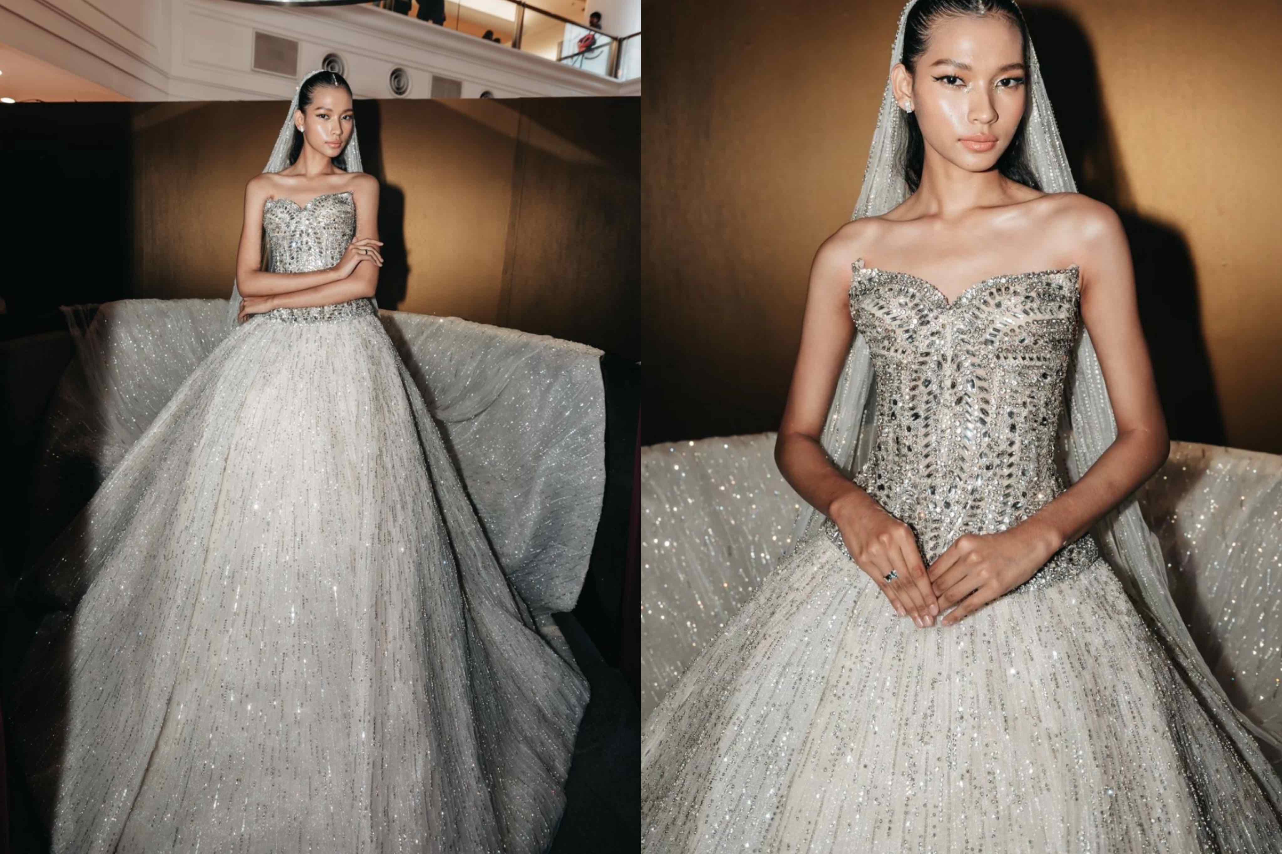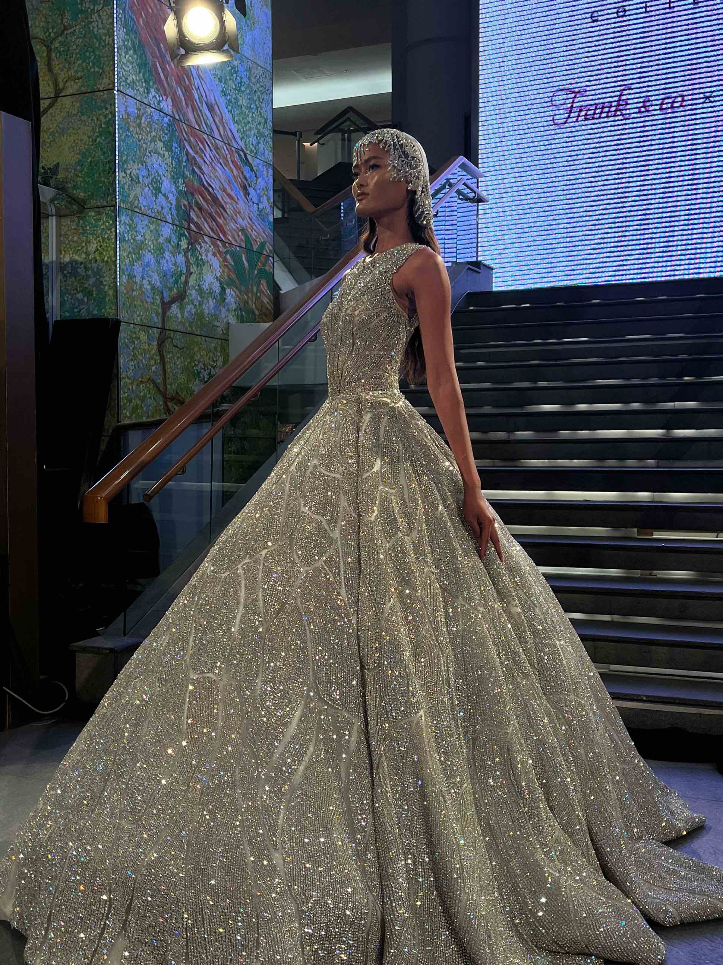 Penutupan acara mencakup momen pengungkapan gaun yang dipenuhi dengan kristal, memiliki berat mencapai 70 kilogram. Gaun ini menjadi puncak penampilan yang memukau, menambahkan kilauan mewah dan kemegahan pada keseluruhan acara. Gaun pencuri atensi ini berhasil membuat hati terenyuh karenanya.