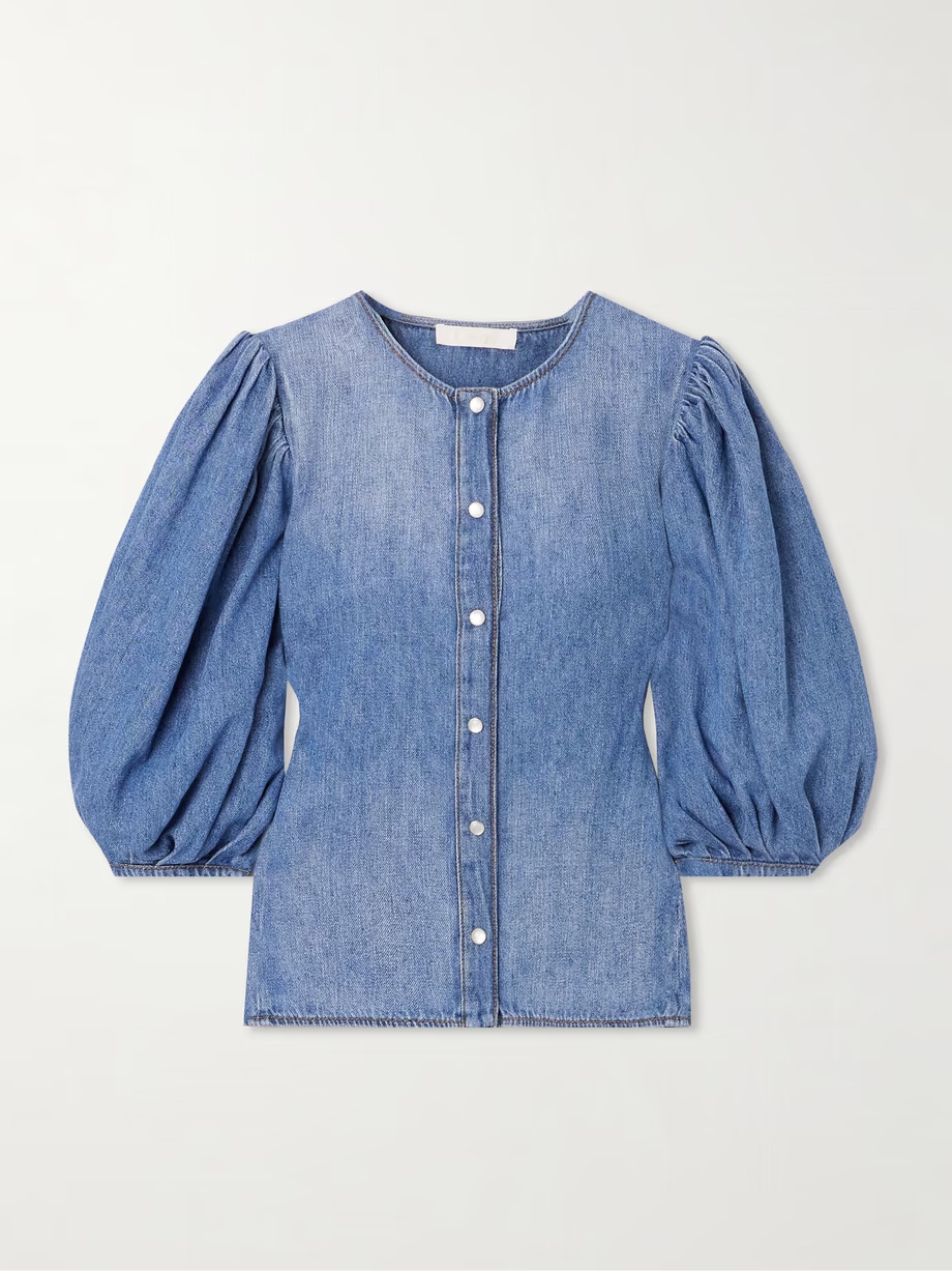 Chloé Recycled Cotton and Linen-Blend Denim Blouse