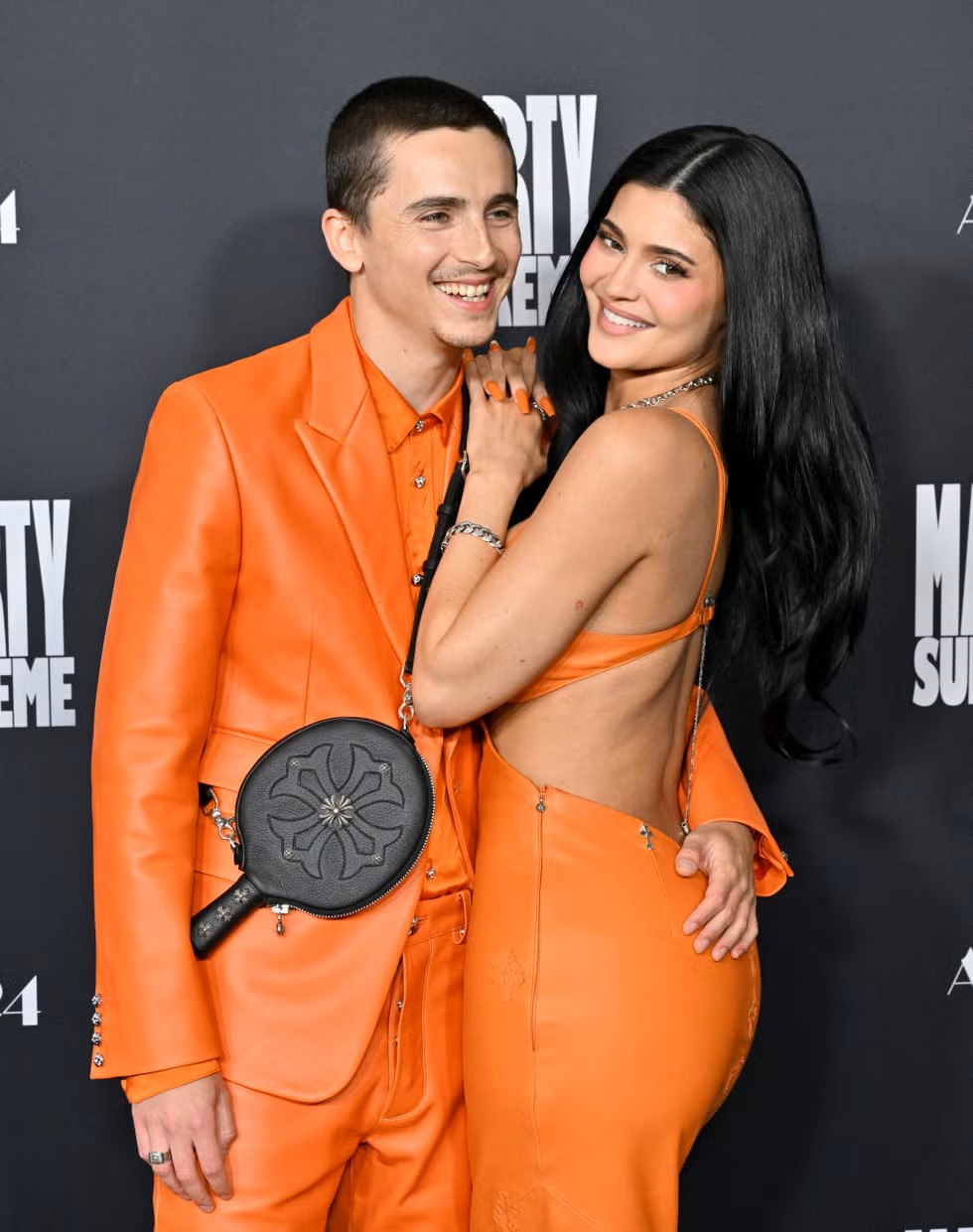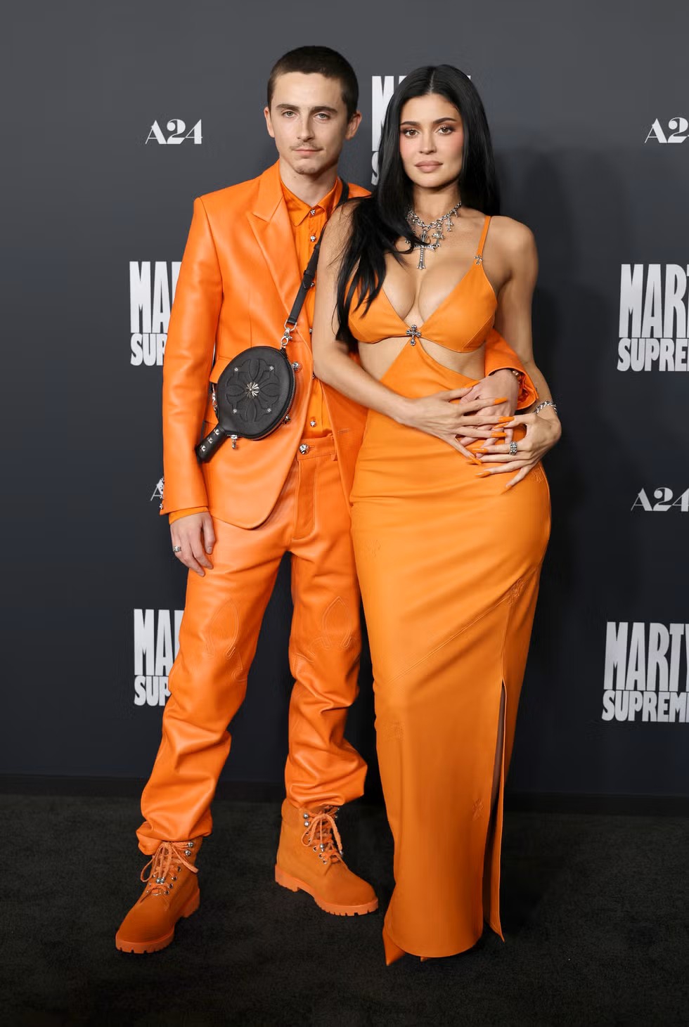 Melakukan penampilan langka bersama di karpet merah, Kylie mendukung Timothée di pemutaran perdana film terbarunya, Marty Supreme, di Los Angeles. Untuk kesempatan tersebut, pasangan ini tampil serasi mengenakan busana kulit oranye custom dari Chrome Hearts.