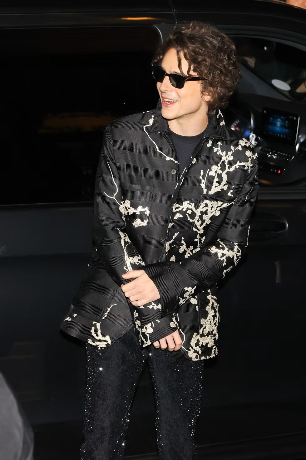 Sementara itu, Timothée tampil sleek dalam setelan hitam yang dipadukan dengan kaus senada dan kalung tenis berlian dua lapis.
