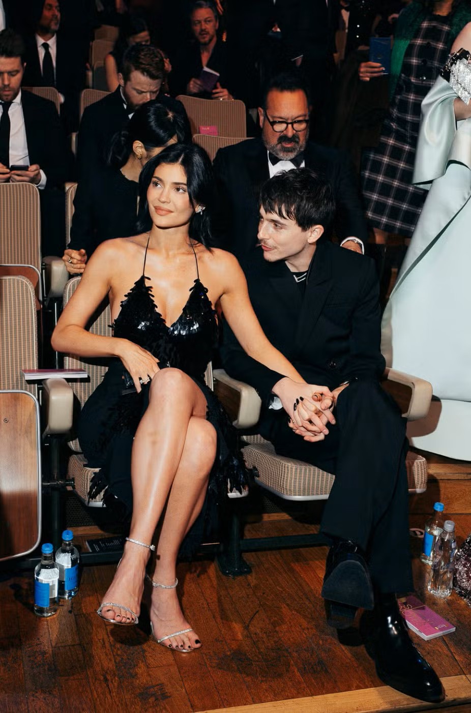 Kylie mengenakan gaun chainmail hitam rancangan Versace untuk mendukung Timothée di ajang penghargaan tersebut, di mana ia memenangkan Best Actor berkat perannya dalam Marty Supreme. Sepanjang acara, keduanya tak henti menunjukkan kemesraan dan saling berciuman.