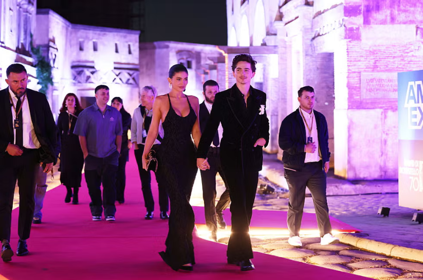 Kylie dan Timothée tampil serasi dalam busana hitam sleek dan terlihat benar-benar jatuh cinta.