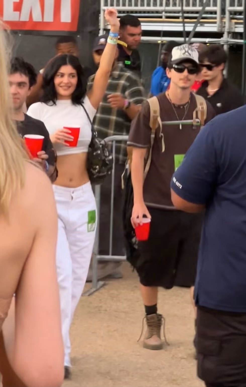 Kylie dan Timothée melakukan debut resmi sebagai pasangan di akhir pekan pertama Coachella. Kylie terlihat mengenakan crop T-shirt putih yang dipadukan dengan celana putih longgar, sementara Timothée tampil nyaris tanpa dikenali dalam T-shirt warna plum, celana pendek hitam, ransel coklat, topi baseball hitam-putih, dan kacamata hitam.