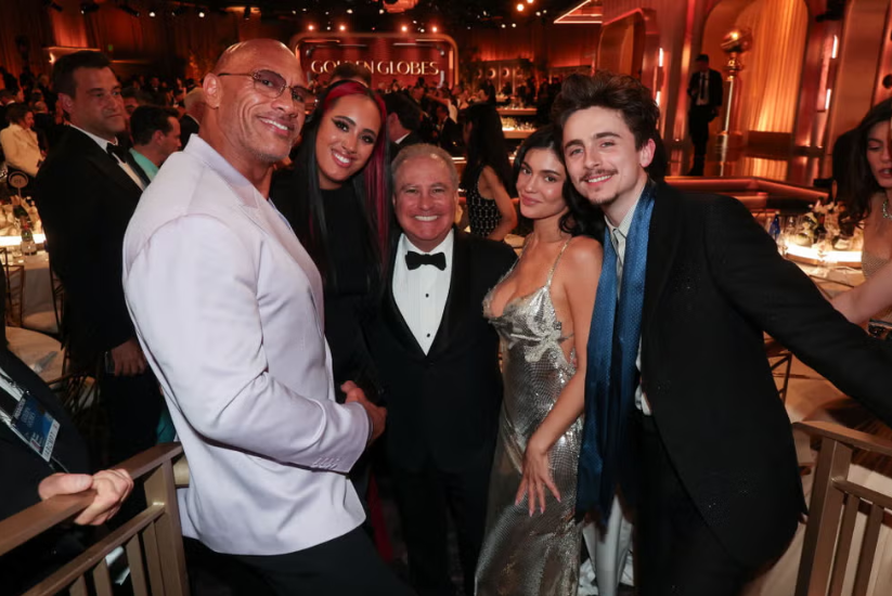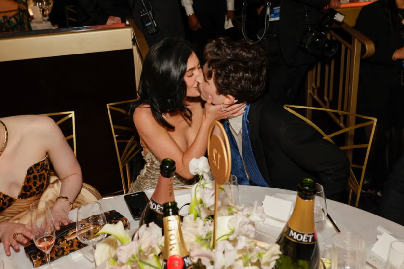 Pasangan ini menghadiri ajang Golden Globes ke-81. Meski tidak berjalan bersama di karpet merah, Kylie dan Timothée terlihat menunjukkan kemesraan mereka di dalam acara—sambil mengenakan busana hitam berkilau yang serasi.