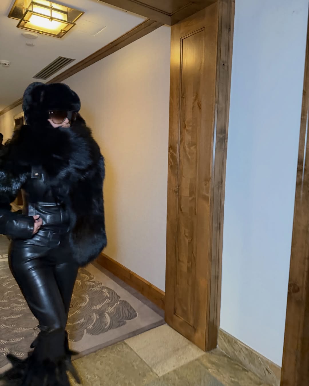 Hanya beberapa hari setelah mencuri perhatian dengan memadukan material bulu di atas bulu lain di kota pegunungan tersebut, Kim menegaskan bahwa obsesinya pada tekstur fuzzy belum berakhir dengan mengenakan dua item ikonis dari era Gucci by Tom Ford.