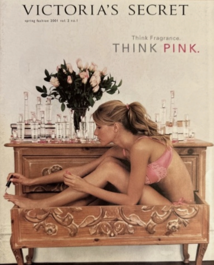 Dalam versi orisinal tahun 2001, sang supermodel tampil dengan pose yang sama seperti Hailey, mengecat kuku kaki di atas lemari laci serupa dengan rambut ditarik ke belakang dalam gaya ponytail, mengingatkan pada tampilan pendiri Rhode tersebut. Saat itu, Gisele tengah mengiklankan parfum VS Think Pink dan mengenakan set bernuansa pink yang mirip meski versinya dihiasi renda, berbeda dengan motif polkadot yang dikenakan Hailey. Di belakangnya, deretan botol parfum memenuhi permukaan lemari, mempertegas suasana kampanye ikonis tersebut.