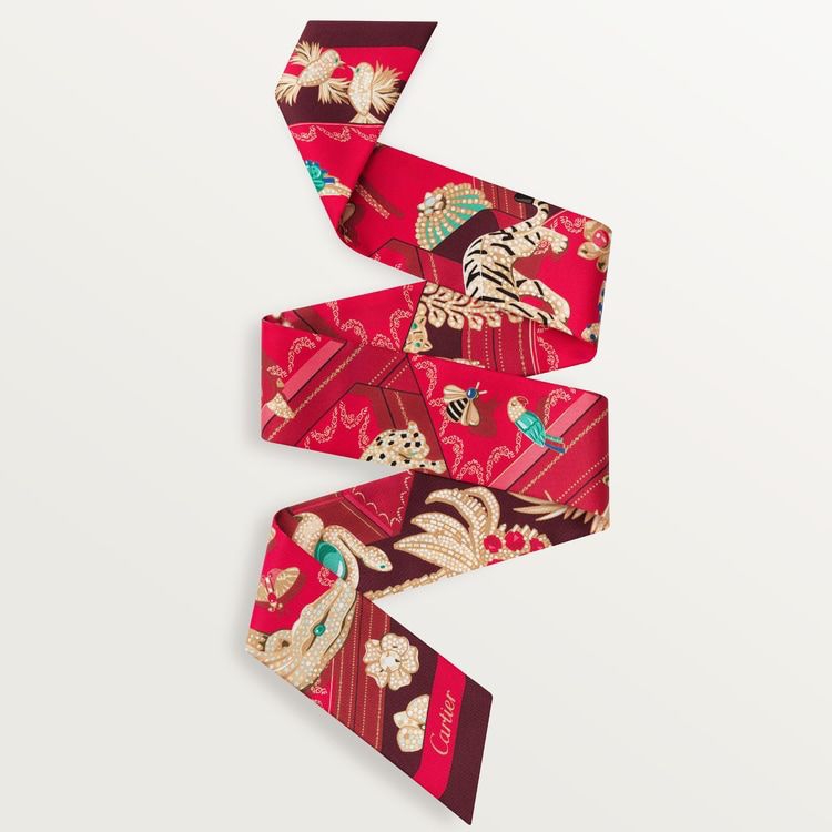 Jika Anda gemar menambahkan sentuhan motif pada tampilan tanpa terasa berlebihan, scarf sutra print dari Cartier ini menjadi pilihan aksen yang sempurna. Dihiasi motif flora dan fauna yang elegan, desain bandeau menawarkan cara refined untuk menghadirkan dimensi visual pada tampilan, ideal untuk digunakan pada acara siang maupun malam. Baik diikat lembut di leher, dililitkan di pergelangan tangan, atau disematkan pada gagang tas, scarf serbaguna ini menghadirkan nuansa playful pada gaya Anda.