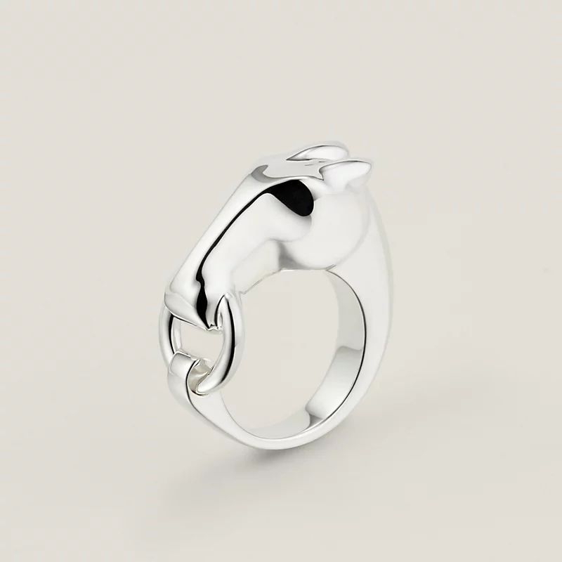 Terinspirasi dari warisan pertama Hermès, yakni Galop Ring karya Pierre Hardy, kreasi ini mengambil bentuk yang terinspirasi oleh siluet pelana kuda. Cincin ini dibuat dari sterling silver berkualitas tinggi, cocok dipadukan dengan tampilan minimal maupun layered stack, menambahkan aksen kuat yang tetap chic, sempurna bagi Anda yang ingin menambah aksen pada tampilan minimalis namun dengan kesan statement yang tidak terlalu berlebihan.