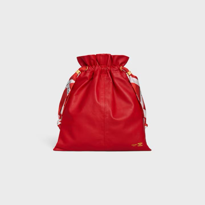 Pouch dengan warna ultra-red ini terbuat dari kulit domba yang lembut, dilengkapi tali serut dari sutra dan lining bermotif cetak, serta sentuhan finishing emas yang menambah kesan mewah. Dirancang fleksibel, tas ini dapat dibawa di bahu maupun diselempangkan, dengan satu kompartemen utama yang cukup untuk kebutuhan sehari-hari. Dengan desain elegan dan praktis, tas ini pas untuk menambahkan aksen oriental yang sederhana tetapi tetap mencuri perhatian.