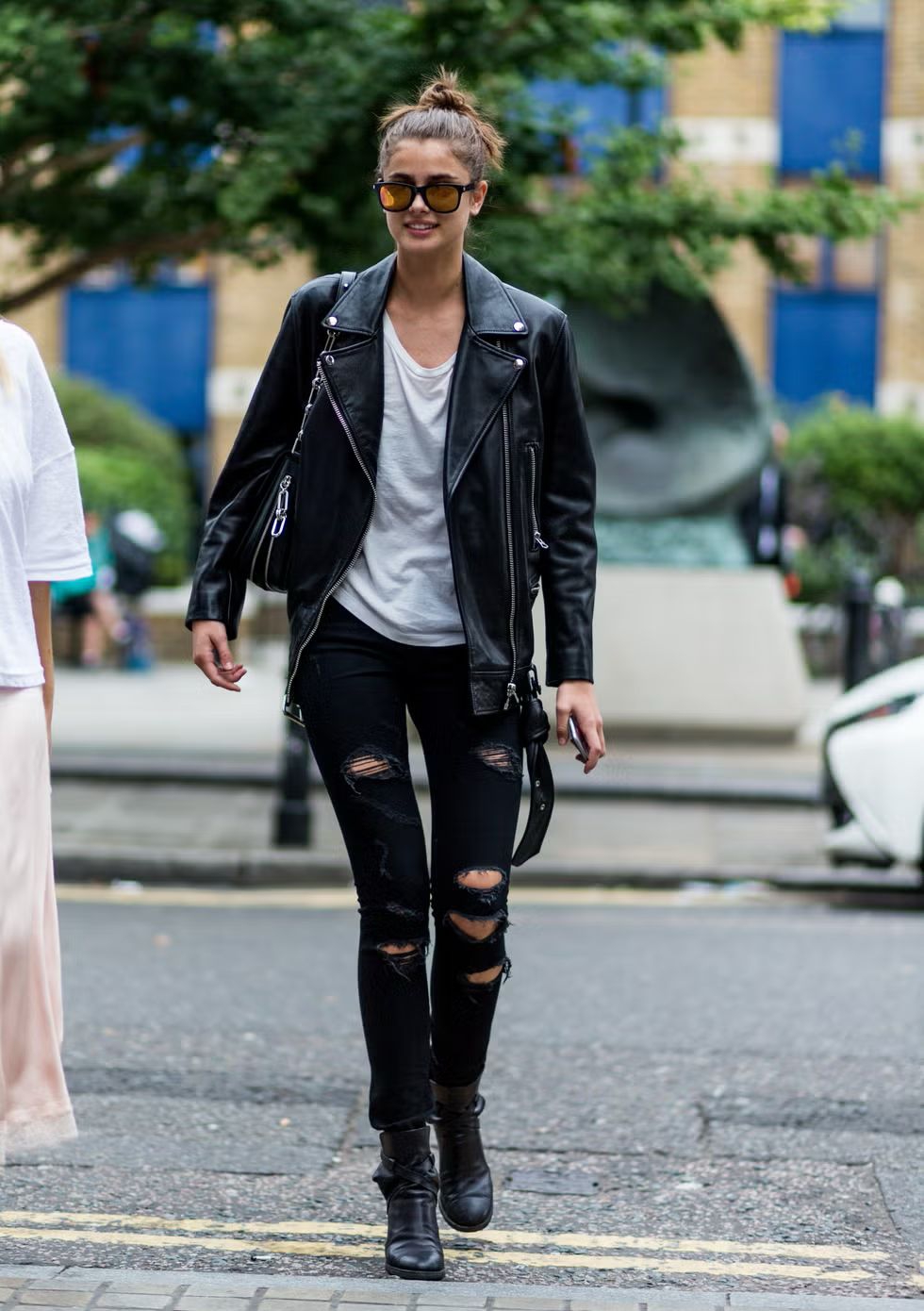 Celana jeans mulai menjauh dari potongan super ketat. Mom jeans yang sebelumnya dianggap ketinggalan zaman kembali menjadi chic. Potongan distressed denim, sering kali dalam warna hitam pekat, mendominasi. Hampir semuanya memiliki tepi berjumbai. Ini adalah puncak gaya off-duty model, ketika fotografer street style mengabadikan para model seusai peragaan busana mengenakan skinny jeans hitam, jaket kulit, dan sepatu moto lengkap dengan sisa riasan glam.