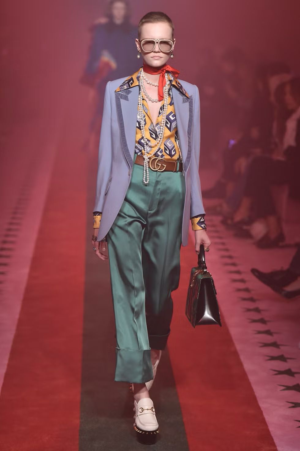 Beralih ke Alessandro Michele, saat itu ia telah menapaki tangga karier di Gucci dan diangkat sebagai direktur kreatif pada 2015. Ia menyuntikkan sentuhan whimsical dan eksentrik ke rumah mode yang sebelumnya dikenal sleek dan sensual, dan pendekatan itu terbukti berhasil. Para model melenggang di runway mengenakan gaun payet trompe l’oeil bergaya retro, dipadukan dengan kacamata berukuran besar, tas berhias aplikasi, serta loafer horsebit yang ia hidupkan kembali. Banyak yang menyebutnya sebagai granny chic.