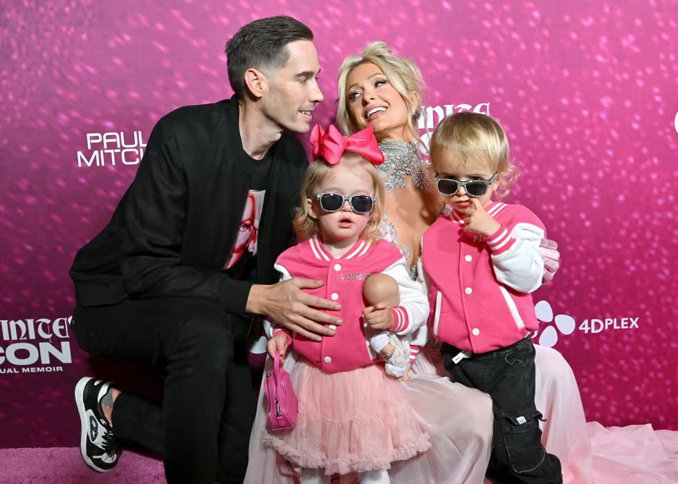 Paris hadir bersama sang suami, Carter Reum serta dua anak mereka Phoenix (3 tahun) dan London (2 tahun). Ketiganya tampil serasi dalam busana yang senada, tentu saja dengan sentuhan merah muda sebagai aksen utama.