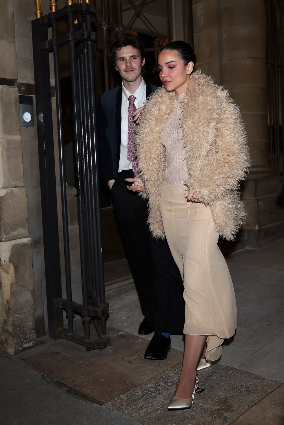 Mengenakan gaun jersey hitam berkerah tinggi dengan belahan kaki menjulang, Victoria tampil memukau di ibu kota Prancis dengan sepatu hak runcing hitam ditemani sang suami, David Beckham. Legenda sepak bola itu tampil rapi dalam setelan abu-abu dingin lengkap dengan dasi, kemeja putih, dan sepatu hitam mengilap.