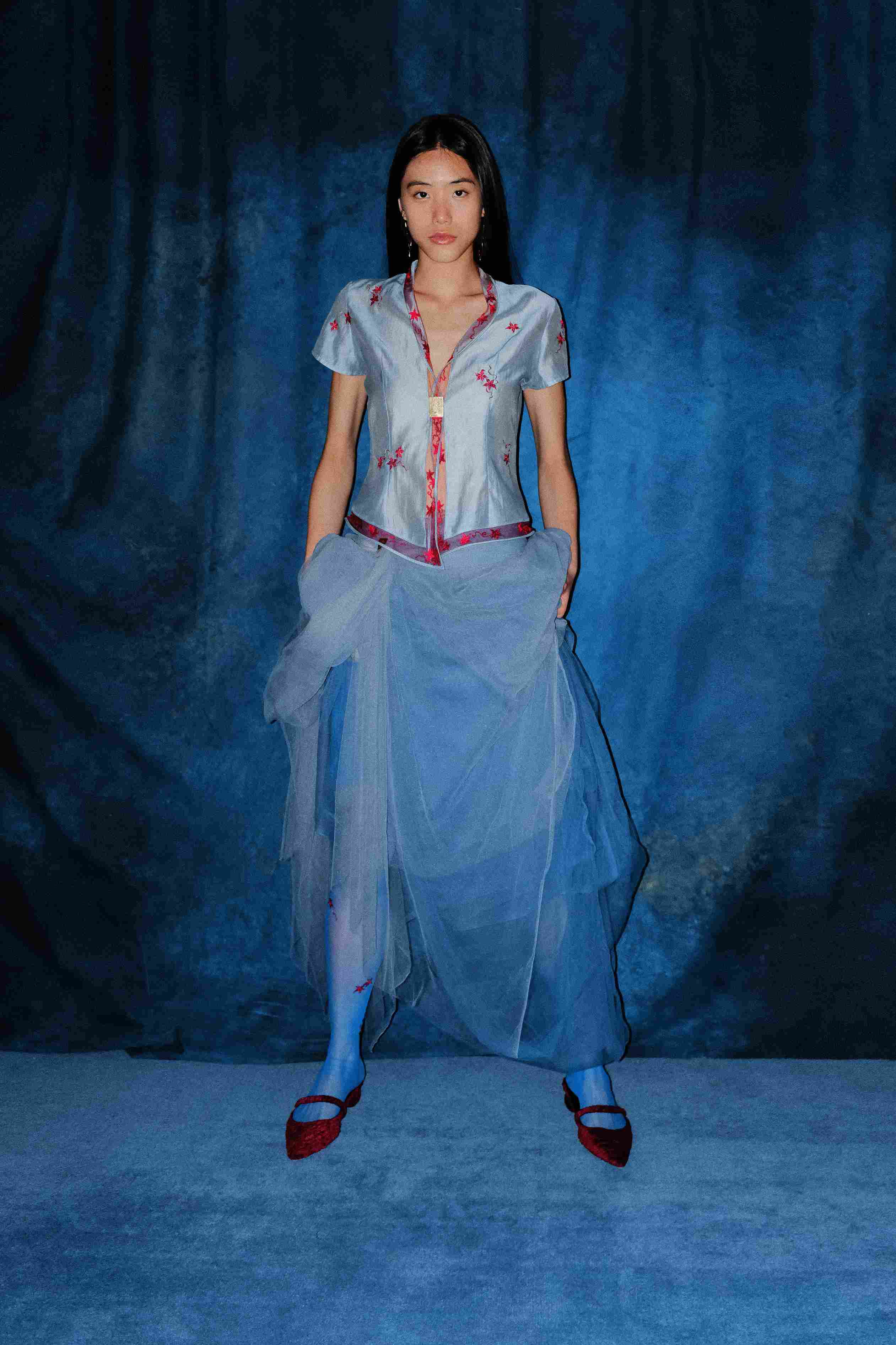 Palet warna dalam koleksi ini dipersempit secara sadar menjadi dua warna utama yaitu merah dan biru. Dua warna ini bukan sekadar pilihan estetika, melainkan simbol keseimbangan elemen api yang diwakili oleh merah dan air serta kayu yang terwakili oleh biru. Perpaduan tersebut melambangkan vitalitas dan umur panjang, sekaligus kemakmuran dan sukacita yang menjadi harapan di tahun baru. Nuansa merah dan biru yang digunakan terasa kaya dan matang, berani namun tetap refined, memberi kesan segar tanpa kehilangan karakter. Hal yang membuatnya istimewa, warna-warna ini tetap membumi dan mudah dipadukan dengan item lain dalam lemari pakaian, menjadikannya investasi gaya yang tak lekang oleh waktu.