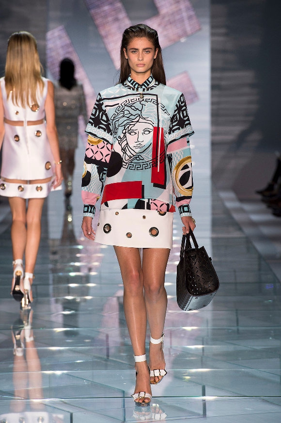 Pada hari ketiga pekan mode di Milan, Versace menjadi salah satu peragaan yang dinanti-nanti para penikmat dan pengamat fashion. Terang saja, sebab label berlambang kepala Medusa ini memang menjadi salah satu rumah mode kebanggaan Italia. Karakternya yang flamboyan dan glamorama yang disuntik unsur sensual menjadi sisi lain wajah perempuan yang tangguh meski acap kali memperlihatkan kulit yang terbuka. Dekorasi elemen Yunani tampil minimalis bersama stitching yang senada di antara palet monokromatis. Namun, di tengah perjalanan menuju finale, rangkaian busana yang mengagung-agungkan warna-warna cerah menyeruak dengan berbagai motif geometris yang atraktif.