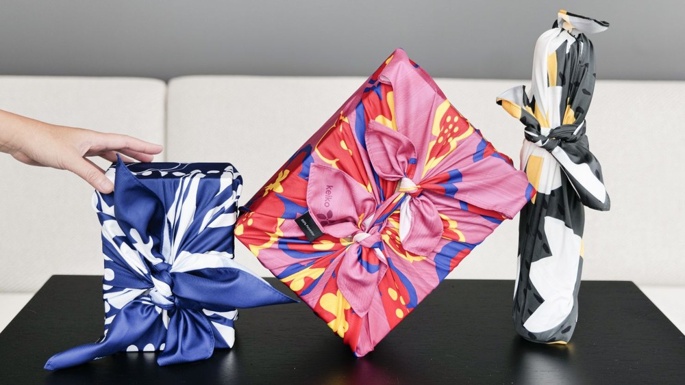 Furoshiki adalah kain tradisional Jepang yang digunakan untuk membungkus barang atau hadiah. Di tengah tren ramah lingkungan global, furoshiki kembali diminati dan kini hadir dalam berbagai desain modern. Beberapa menampilkan motif ukiyo-e, flora khas daerah, hingga desain kontemporer. Ringan dan multifungsi, furoshiki bisa digunakan sebagai tas, scarf, bahkan dekorasi dinding. Banyak toko juga menyertakan panduan penggunaan yang bisa dijadikan nilai tambah saat dijadikan hadiah. Sebagai oleh-oleh, furoshiki menawarkan keindahan dan filosofi Jepang yang menghargai kepraktisan serta estetika.