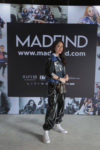 Kemudian, keduanya juga merancangan sebuah jaket bersiluet dekonstruksi yang menggunakan material bahan bermotif garis dari sisa produksi. Trik keduanya yang mengolah kain sisa produksi tentu sejalan dengan misi Made Ind sendiri sebagai fashion retailer yang kerap mempromosikan konsep sustainable di industri mode Tanah Air.