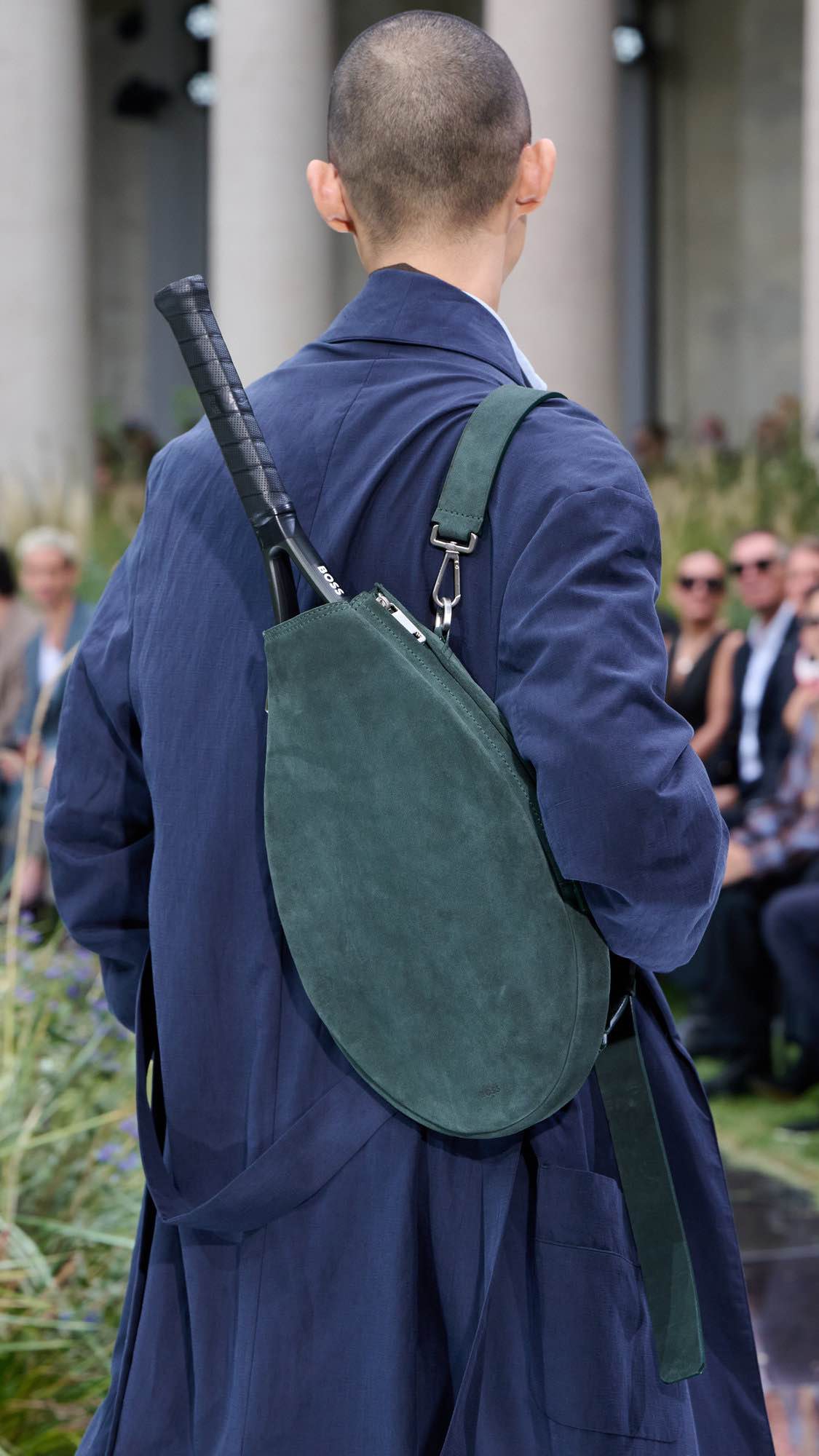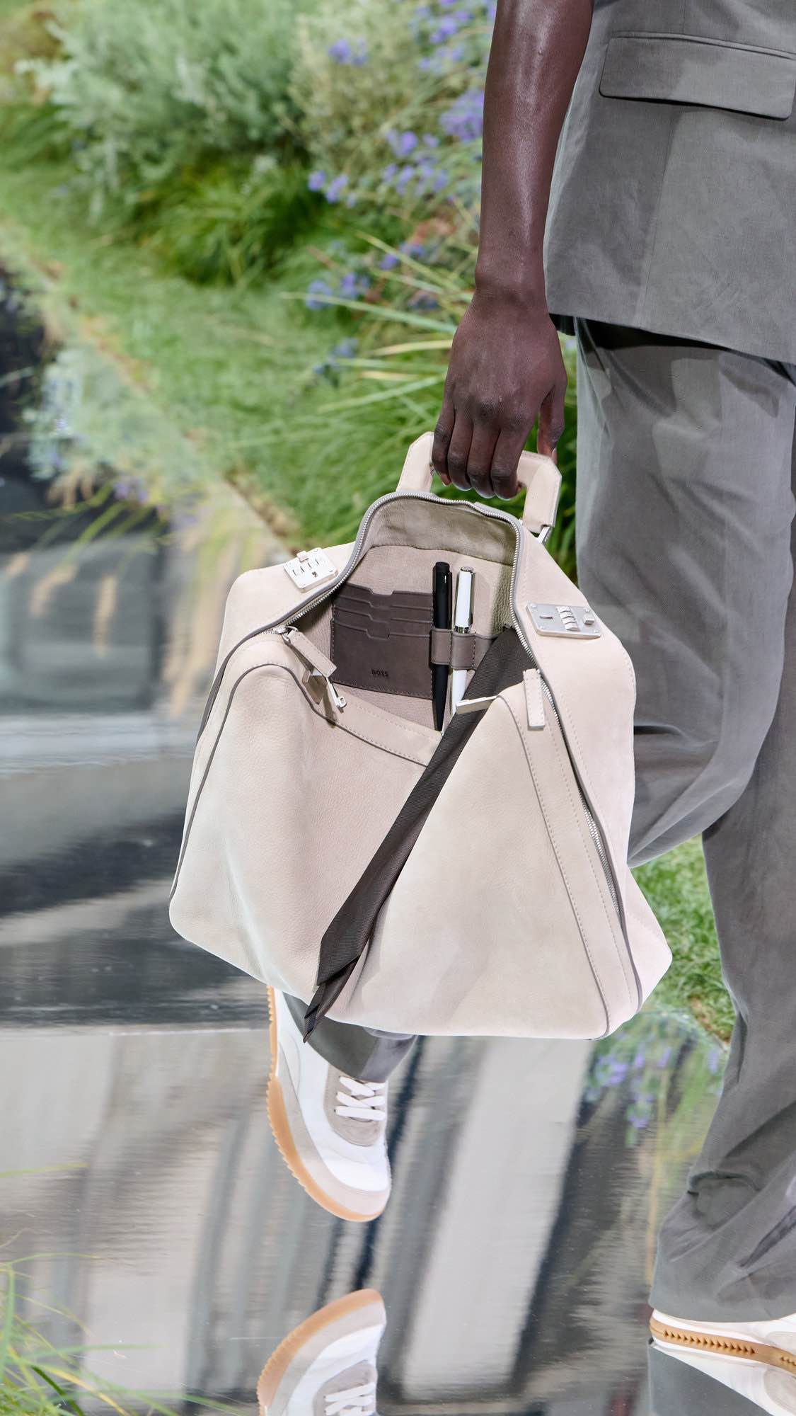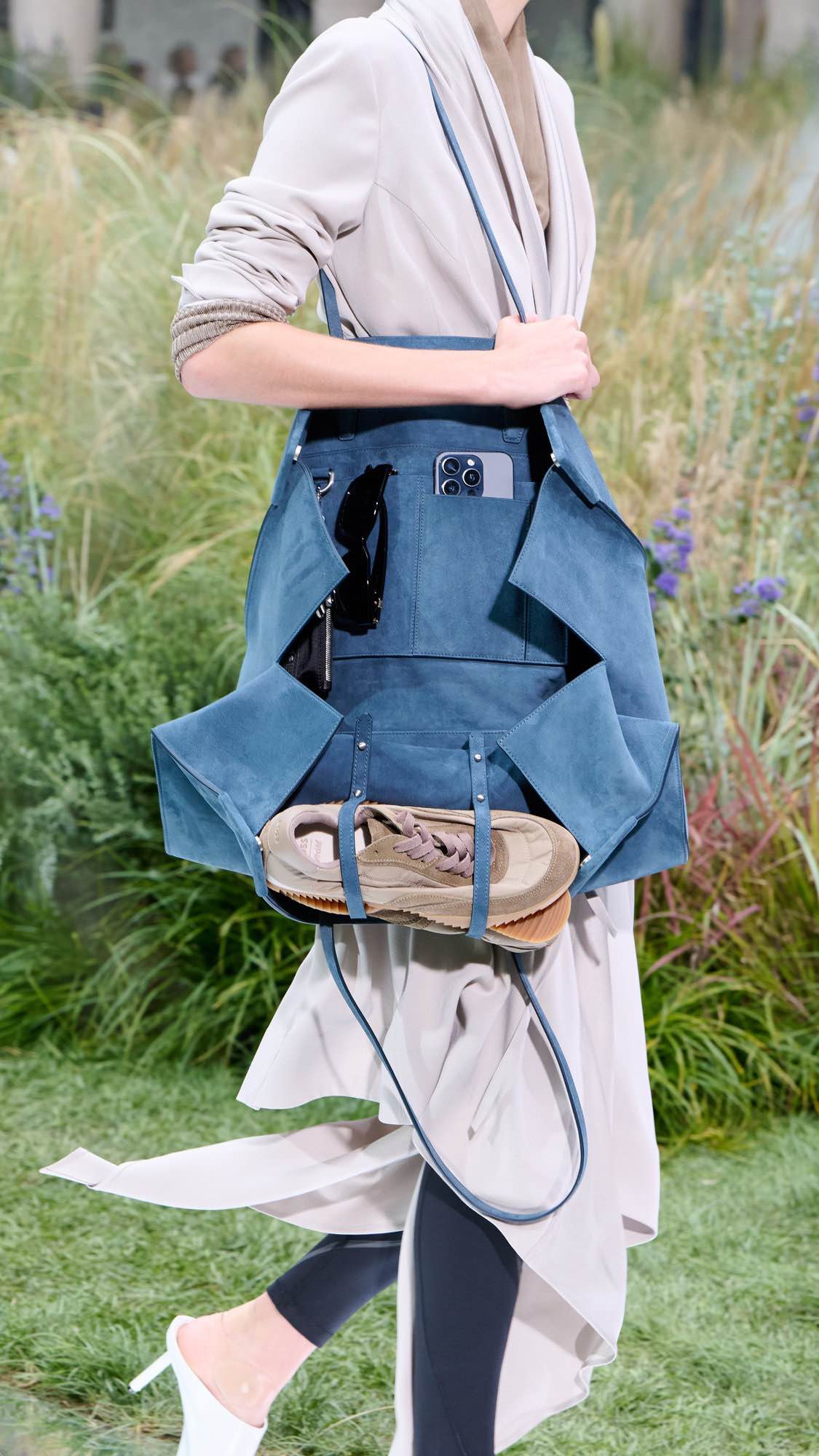 Para model pun melangkah keluar membawa sentuhan sporty dan wellness, seperti matras yoga dan tas raket tenis dengan detail tali serut utilitarian. Konstruksi slouchy pada tas kerja dan tas hobo menambah kesan santai yang menarik perhatian.