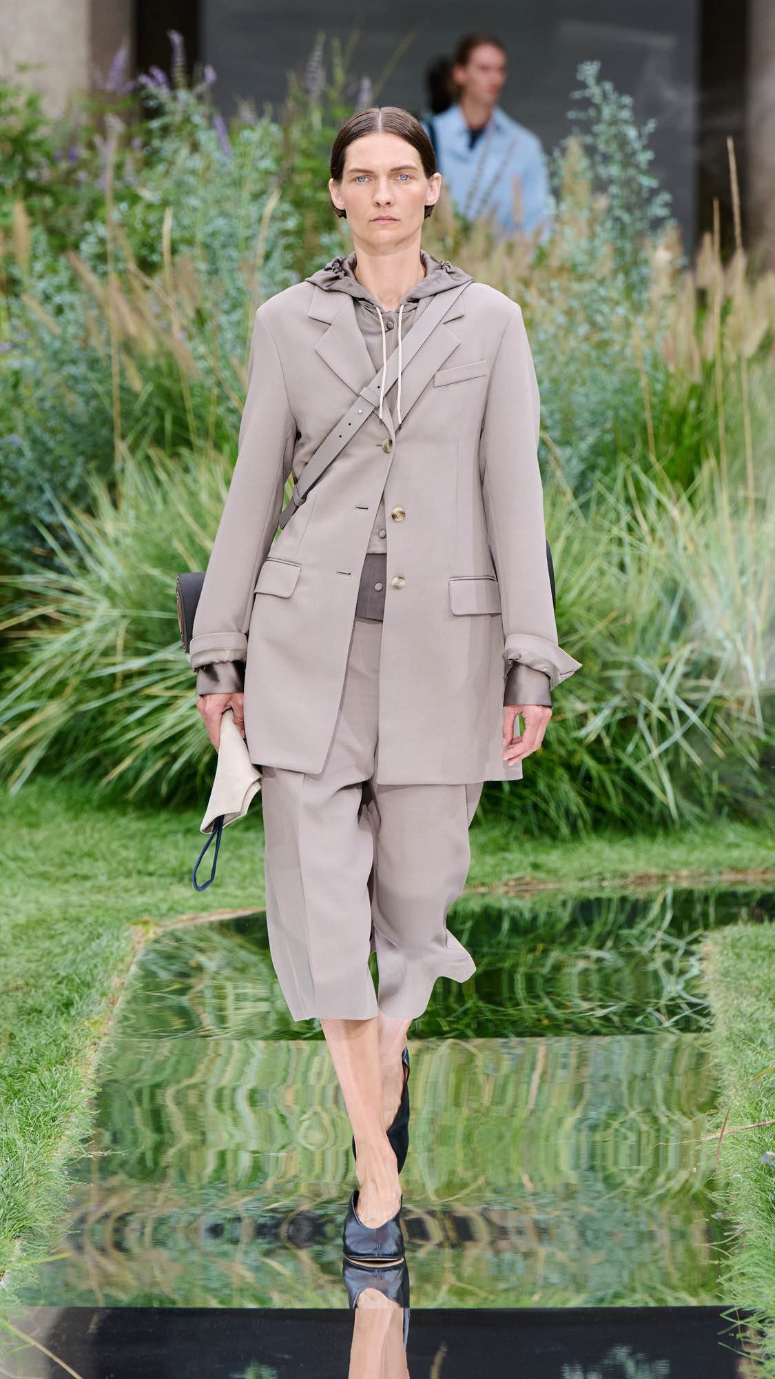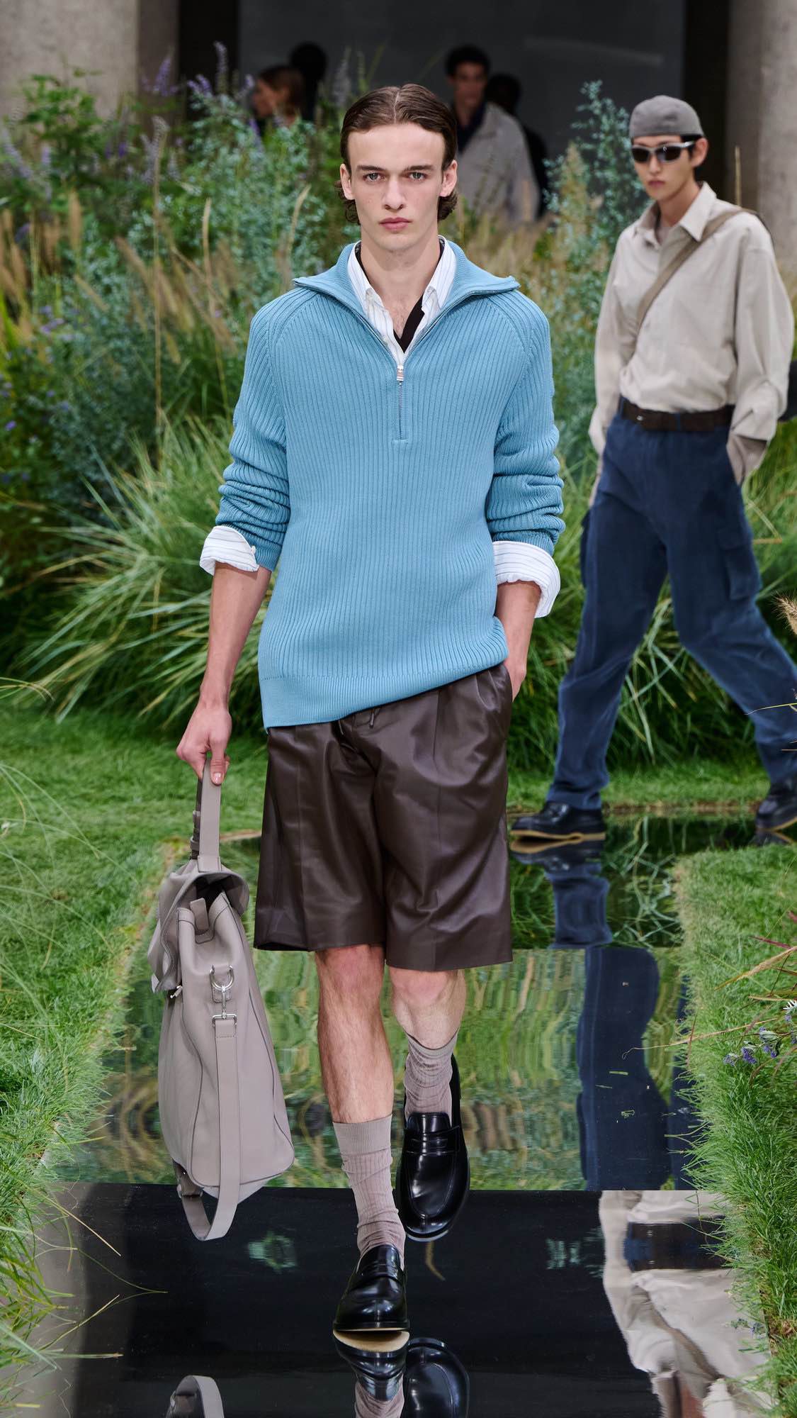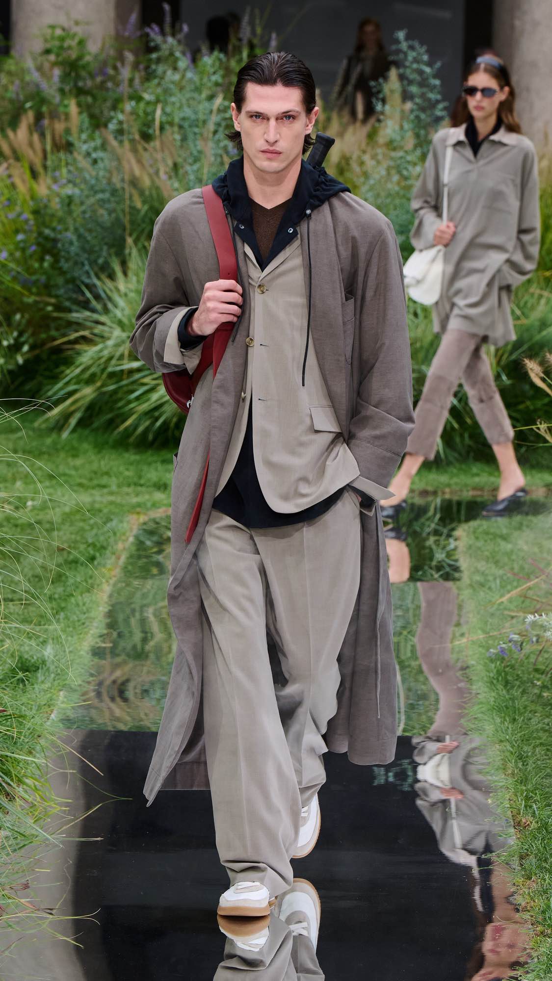 Berlatar taman botani yang tenang di halaman palazzo, pertunjukan ini menyuguhkan oase kedamaian di tengah gemuruh kota Milan. Fleksibilitas tailoring tampak menonjol dengan material ringan yang membuat setelan tiga kancing tetap terlihat santai meski berlapis. Ada pula perkenalan kemeja dan celana kasual berpotongan pendek yang menghadirkan napas segar pada tampilan quiessential.