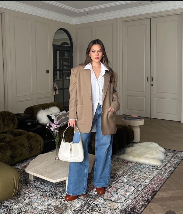 Oversized blazer dapat menjadi “statement piece” andalan yang bisa mengubah outfit kasual Anda sehari-hari, menjadi outfit kerja yang seru dan modis. Oversized blazer juga dapat Anda kombinasikan dengan busana rapih lainnya jika ingin terlihat lebih profesional.