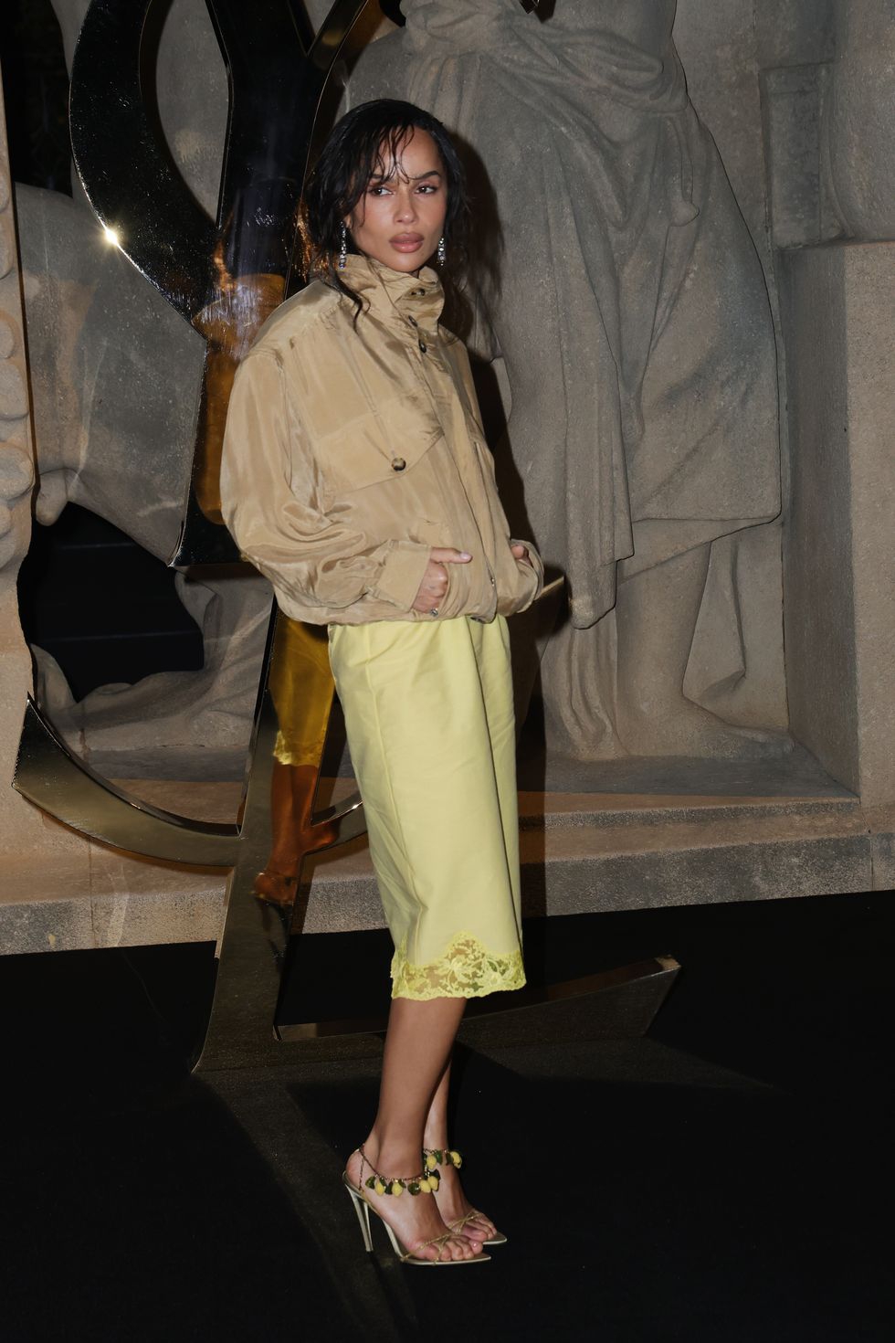 Juga mengadopsi warna citrus, Zoë hadir di gelaran Saint Laurent dengan gaya yang memberi sentuhan sporty pada siluet sutra klasiknya. Aktris yang selama beberapa bulan terakhir kerap terlihat mengenakan slip dress hitam saat bepergian bersama Harry Styles ini tampil berbeda dengan rok midi kuning lemon.