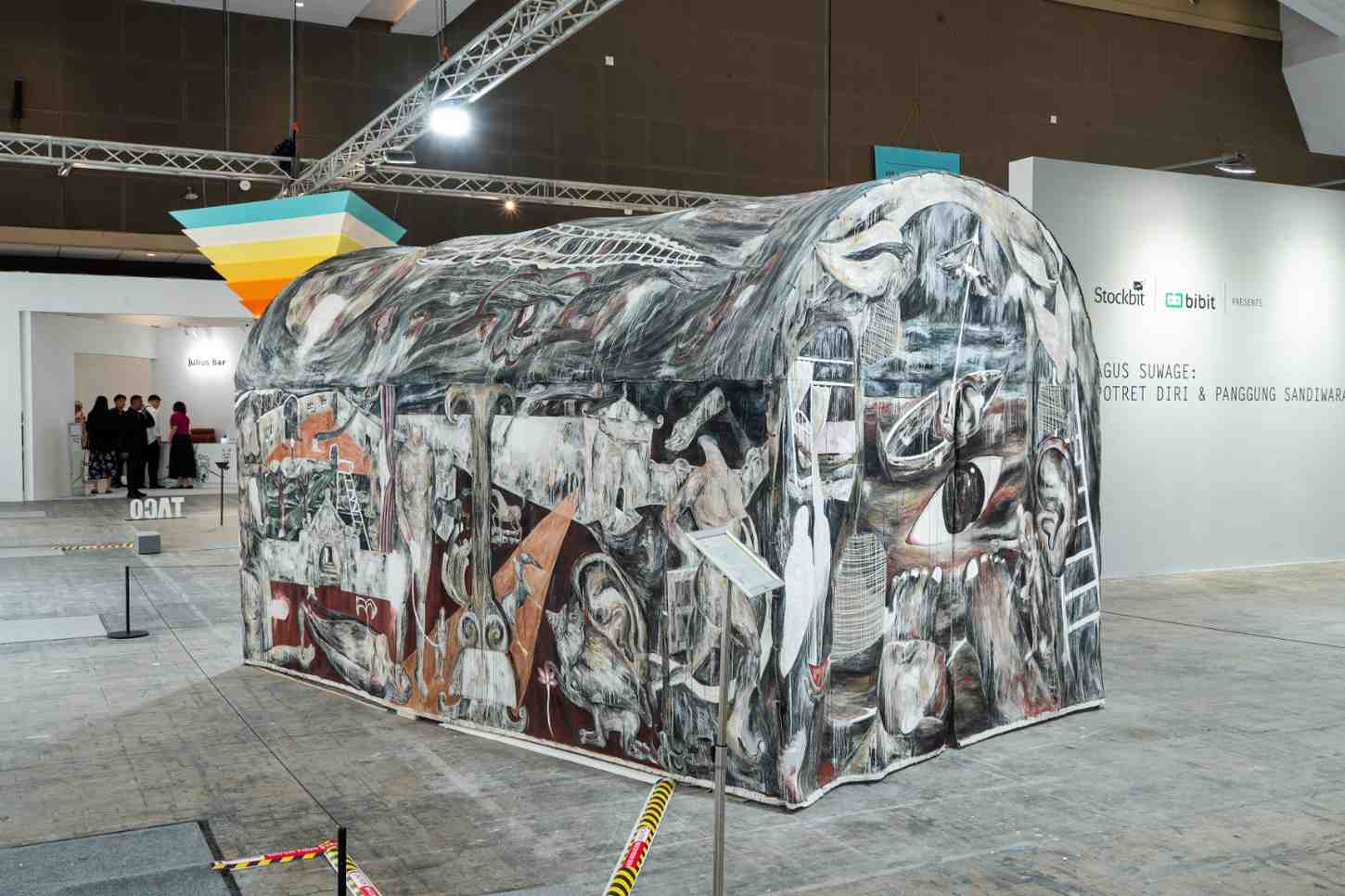 Di sisi artistik, berbagai presentasi spesial turut memikat perhatian. Penampilan luckily there’s no inside (with friendly ghost) karya Ardi Gunawan dan PLUNGE oleh Victoria Kosasie bersama Marleigh Belsley menghadirkan pengalaman multisensorik yang memancing dialog antara ruang, tubuh, dan penonton. Kedua performans tersebut menjadi contoh bagaimana Art Jakarta berani menghadirkan bentuk-bentuk seni eksperimental yang memperkaya pengalaman pengunjung. Tak kalah menarik, segmen Highlights menampilkan karya dari seniman ternama seperti Eddie Hara, Agus Suwage, Muklay, Azizi Almajid–Nuri Fatimah, dan Palette Studio, masing-masing membawa narasi yang kuat dan beragam mengenai isu-isu sosial, budaya, dan kemanusiaan. Melalui pendekatan kuratorial yang matang, Art Jakarta berhasil menyuguhkan pengalaman visual dan emosional yang seimbang antara hiburan dan refleksi.