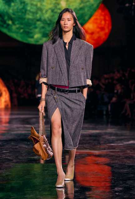 Garis maskulin yang muncul di awal koleksi kini kembali hadir dengan sentuhan yang lebih lembut, terinspirasi dari jaket blouson klasik. Eksperimen material terlihat semakin luas, baik pada bagian luar maupun dalam. Sentuhan akhir hadir melalui aksesori yang kaya detail seperti mutiara, rantai berlapis enamel, serta sepatu dengan toe cap ikonis yang dirancang nyaman dan fungsional.