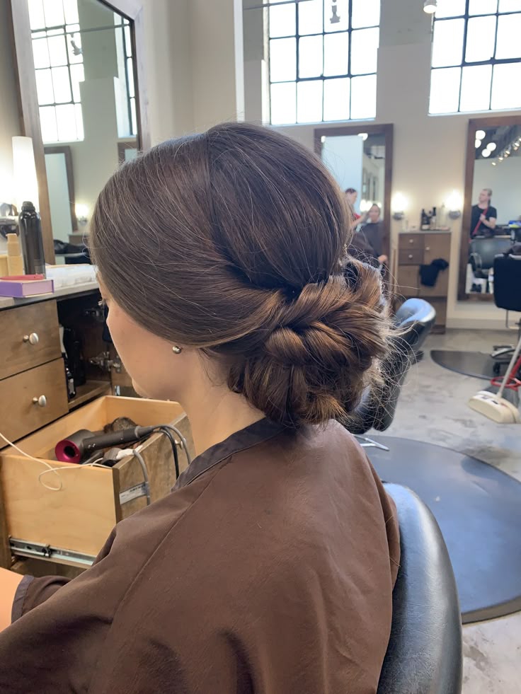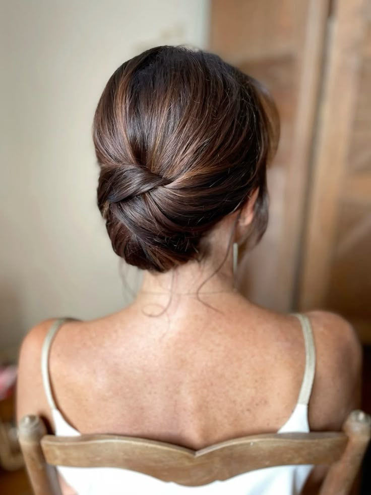 French twist adalah gaya elegan yang tak pernah gagal untuk menciptakan tampilan sophisticated. Rambut dipelintir ke atas dengan teknik rapi, menghasilkan bentuk ramping dan memanjang di bagian belakang kepala. Model ini sangat cocok untuk pengantin dengan gaun off-shoulder atau neckline terbuka, karena menonjolkan leher dan bahu secara anggun. Sentuhan modern dapat ditambahkan melalui tekstur lembut atau aksesori minimalis seperti pin logam tipis. Gaya ini memadukan pesona klasik Prancis dengan keanggunan kontemporer yang memikat.