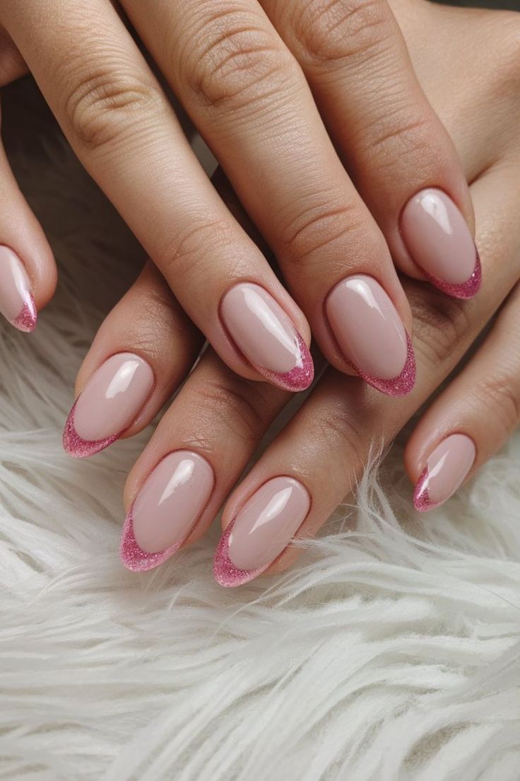 French manicure bernuansa pink memberikan sentuhan klasik dengan twist modern. Ujung kuku dilapisi warna pink lembut yang berpadu sempurna dengan dasar nude, menciptakan tampilan anggun dan chic. Gaya ini serbaguna cocok untuk tampilan profesional di kantor maupun acara spesial. Sentuhan lembutnya menonjolkan kuku yang sehat, rapi, dan feminin dalam setiap gerakan tangan.