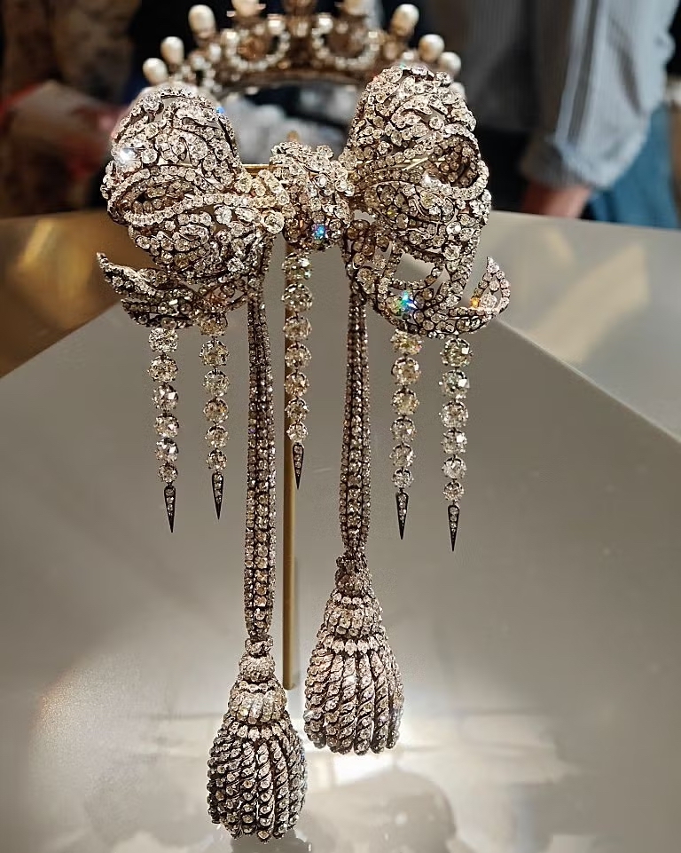 Karya agung ini, yang menampilkan rangkaian pita berjumbai dan lima baris tetesan berlian dengan bingkai bezel, terdiri dari 2.438 berlian dan 196 berlian potongan mawar, menurut keterangan dari Louvre. “Ini adalah pencapaian luar biasa dalam hal ketelitian teknis: ratusan batu yang dipotong satu per satu (tanpa bantuan laser atau alat potong komputer seperti sekarang!) dan dipasang sedemikian rupa agar mampu menangkap cahaya seolah perhiasan itu bernapas,” ujar Briony. “Para perajin pada masa itu mengandalkan kawat yang digambar tangan, paduan logam tempa manual, dan alat sederhana yang menuntut bukan hanya keterampilan, tetapi juga tingkat kesabaran yang hampir mustahil dibayangkan di budaya modern yang serba cepat seperti sekarang.”