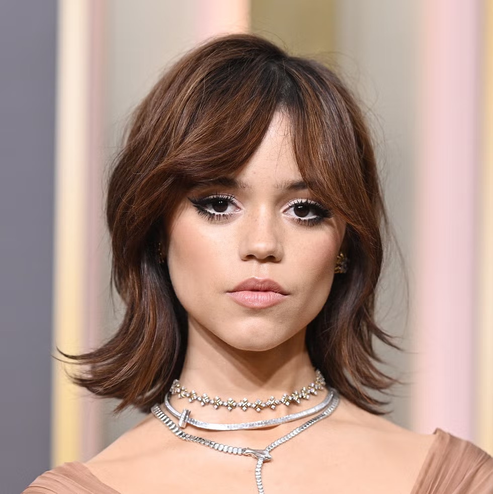 - Wajah persegi: Layer lembut dengan poni samping dapat melembutkan garis rahang tegas.