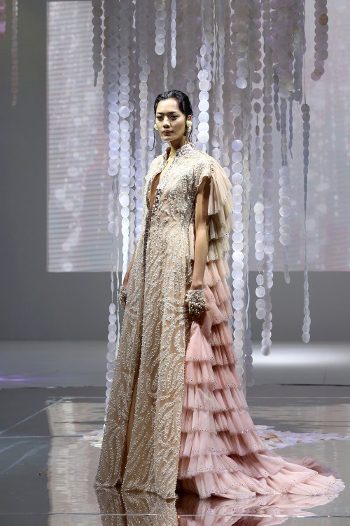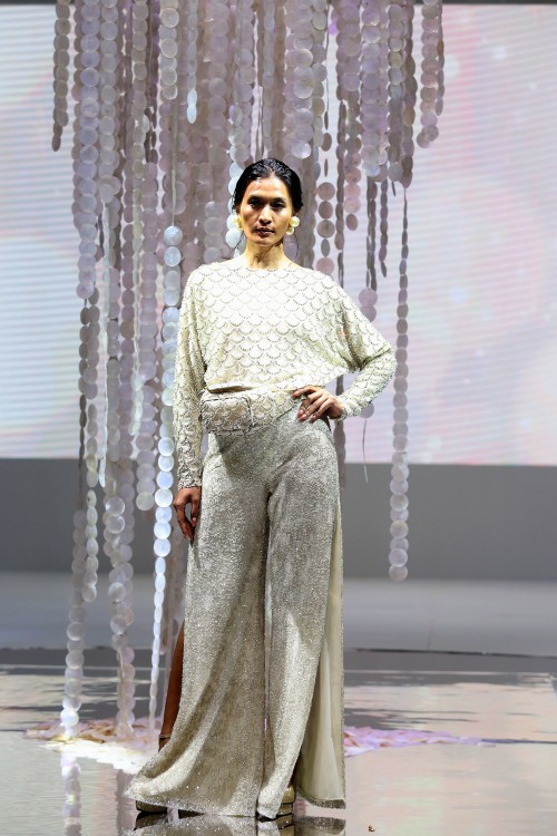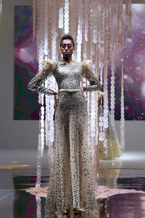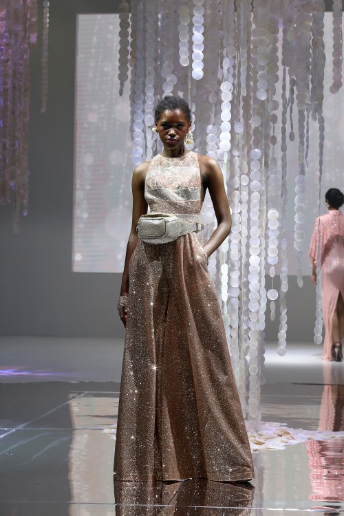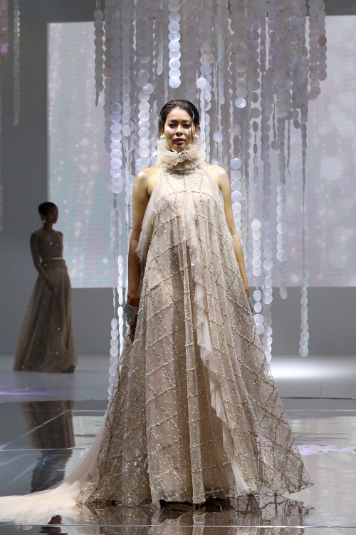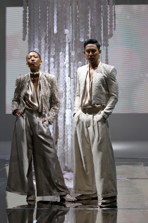 Ia pun tak berhenti bereksplorasi di beberapa aspek tertentu saja, kali ini ia juga terus belajar untuk bereksperimen dengan embellishment dan embroidery. Salah satu teknik embellishment yang menurutnya menantang ia terapkan di atas sebuah jumpsuit di koleksi ini. Teknik beading yang hampir menyelimuti sekujur busana rancangannya juga ia perhatikan secara mendetail, demi menghindari ketidaknyamanan yang dirasakan oleh para klien ketika mengenakan rancangannya.