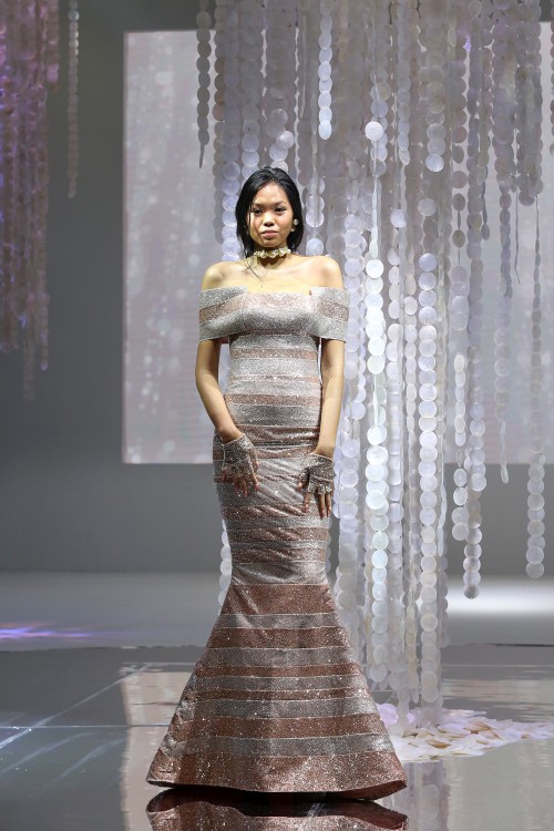Keanggunan wanita yang seksi dipancarkan di setiap bagian koleksi ini, di mana koleksi ini didominasi oleh siluet yang merengkuh lekuk tubuh, aksen backless, material sheer yang delicate, dan garis leher V yang memancarkan karisma setiap pemakainya.