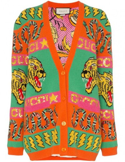 Ketika musim dingin tiba, bukan berarti Anda hanya bisa mengenakan warna-warna netral dan dingin. Tetap tampil menyegarkan di musim dingin layaknya semarak musim panas dengan cardigan bermotif printed lansiran Gucci ini.