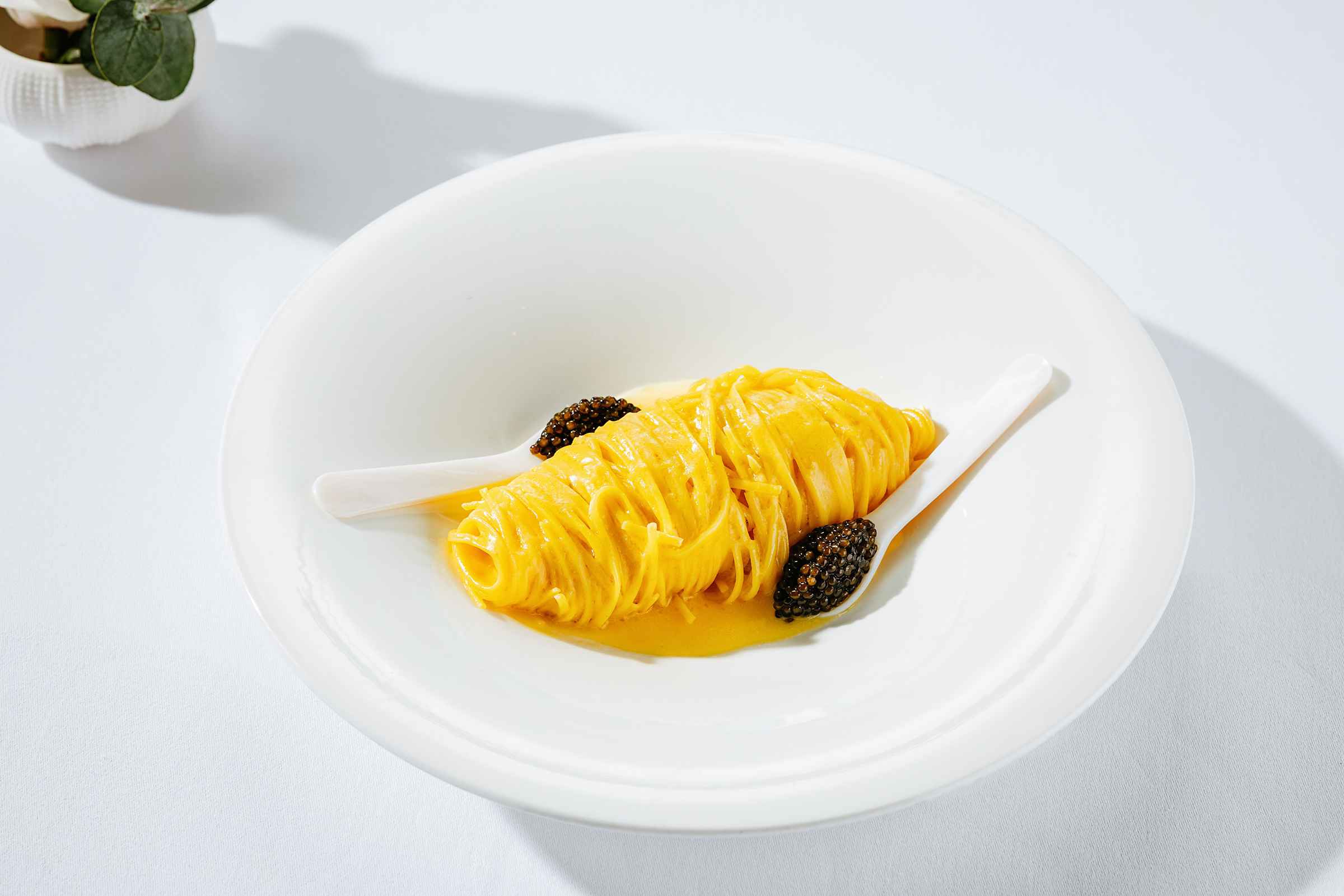 Sejalan dengan tradisi kuliner Italia, pasta buatan tangan menjadi inti dari dapur L’Amo. Setiap piring mencerminkan dedikasi artisanal dan harmoni rasa yang menawan. Hidangan Spaghettone Cacio & Pepe ($88), misalnya, memadukan saus pecorino yang lembut dan lada hitam yang tajam dengan tambahan saus uni Jepang premium dan daun kucai segar, menghasilkan reinterpretasi elegan dari hidangan klasik Romawi. Sementara itu, Tagliolini Lime & Caviale ($118) menawarkan kemewahan rasa dengan emulsi mentega jeruk nipis dan sentuhan halus dari mutiara kaviar Italia, menciptakan perpaduan segar dan asin yang menawan di setiap suapan. Dari laut, Impepata di Cozze ($58) menghadirkan kerang Neapolitan yang dikukus dalam anggur putih dan bawang putih harum, disajikan bersama roti sourdough panggang untuk menikmati setiap tetes kuahnya. Hidangan Catalana dell’Amo juga menjadi favorit, menyajikan pilihan seafood segar seperti lobster dan udang yang disajikan dengan tomat datterino dan sayuran segar, disempurnakan dengan saus khas L’Amo Catalana buatan rumah.