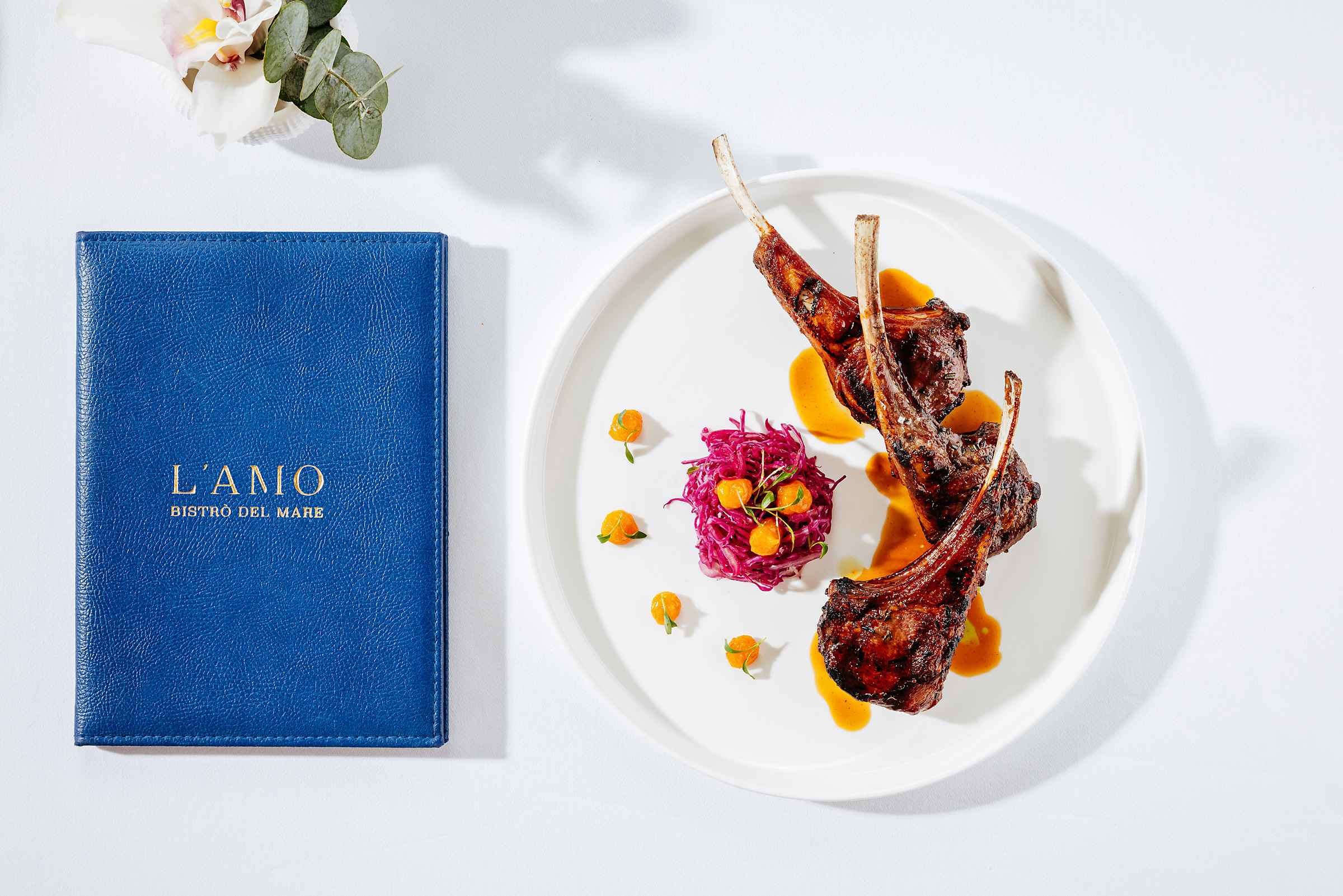 Tak hanya berfokus pada hasil laut, dapur L’Amo juga menampilkan hidangan daging unggulan seperti Costolette d’Agnello alla Brace ($86) dengan potongan domba yang direndam selama 36 jam sebelum dipanggang di Josper hingga menghasilkan aroma arang yang khas. Hidangan ini disajikan dengan kol merah, kompot jeruk mandarin, serta jus domba berkilau yang memperkuat rasa gurih dan tekstur lembut daging. Setiap hidangan di L’Amo dirancang untuk memberikan keseimbangan rasa antara kelezatan, kesegaran, dan keanggunan, merepresentasikan keahlian dan tradisi kuliner Italia dengan cara yang modern namun tetap menghormati akarnya.
