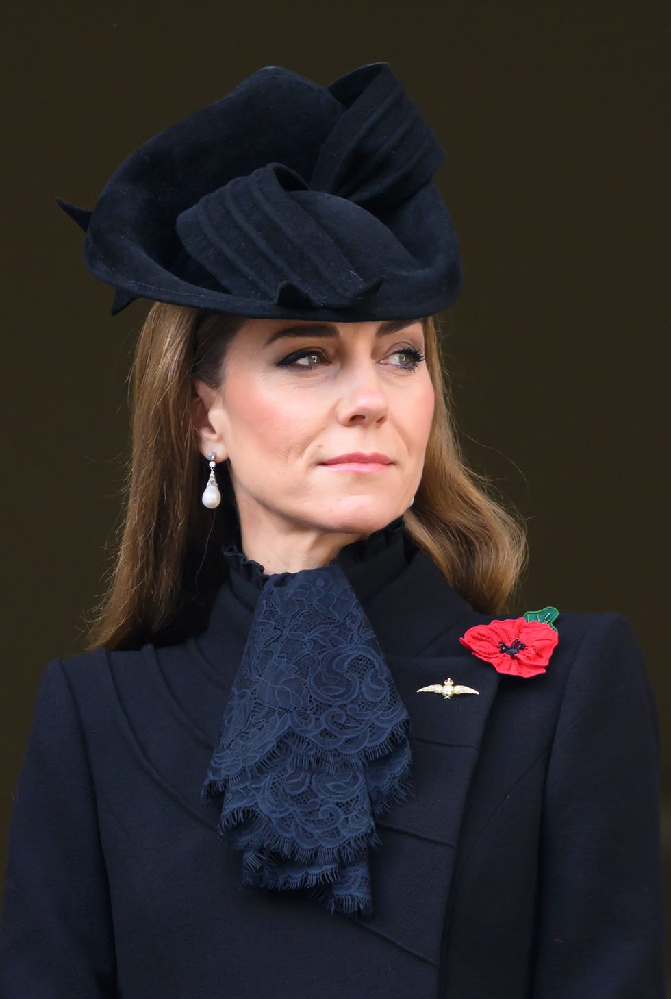 Pada peringatan Remembrance Sunday tahun ini, Putri Kate memegang peran utama. Baru saja kembali ke London setelah kunjungan kenegaraannya ke Brasil, ia tampil dalam Festival of Remembrance mengenakan busana peplum hitam dan perhiasan keluarga, ditemani Pangeran George sebagai pendampingnya dalam penampilan perdananya di acara tahunan tersebut.
