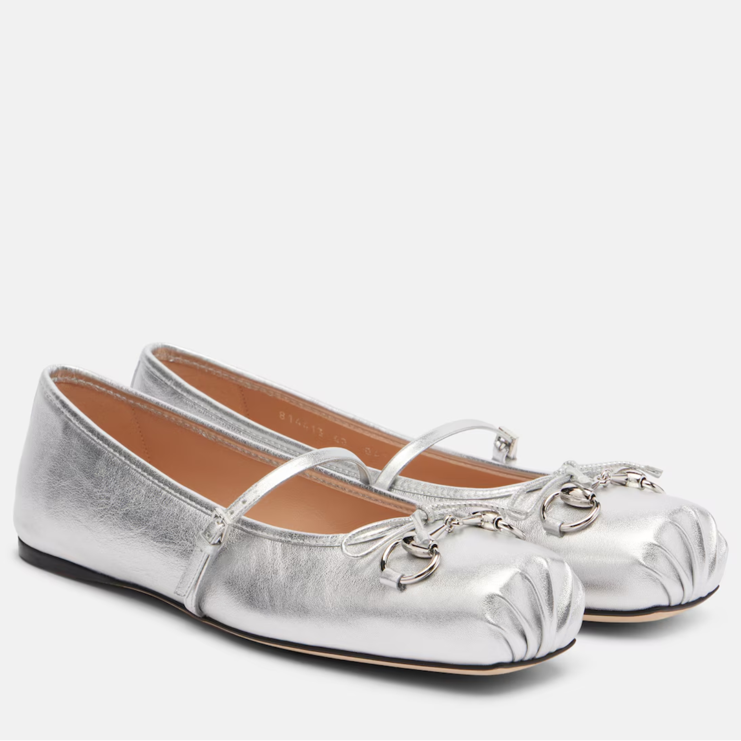 9. Gucci Horsebit Metallic Leather Ballet Flats