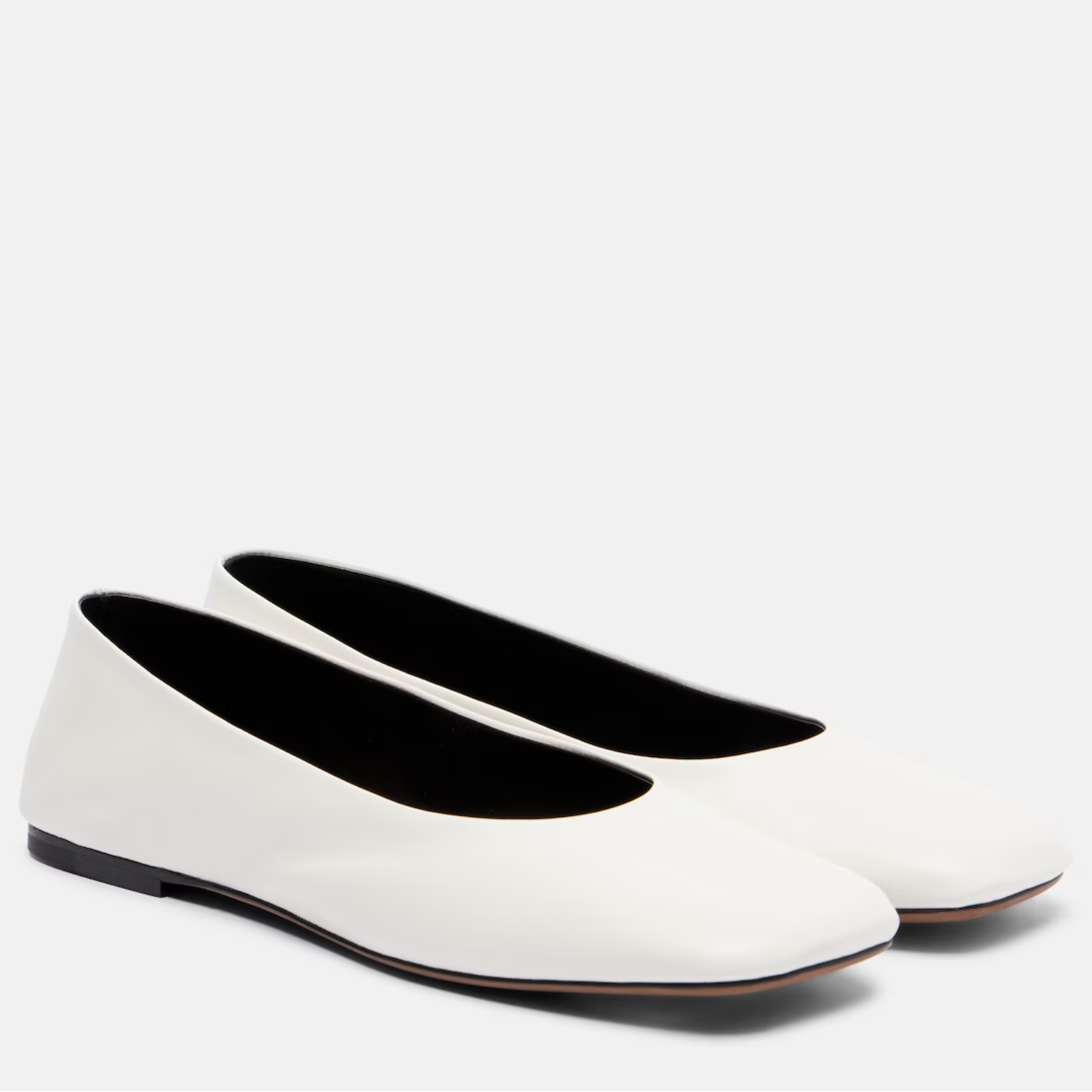 Karya The Row ini menonjol lewat desain minimalis yang sangat presisi. Ballet flats dengan ujung kotak dari kulit halus ini menghadirkan keanggunan tanpa usaha. Tanpa ornamen berlebih, sepatu ini merepresentasikan filosofi “quiet luxury” yang menjadi ciri khas duo Olsen dalam setiap rancangan mereka.