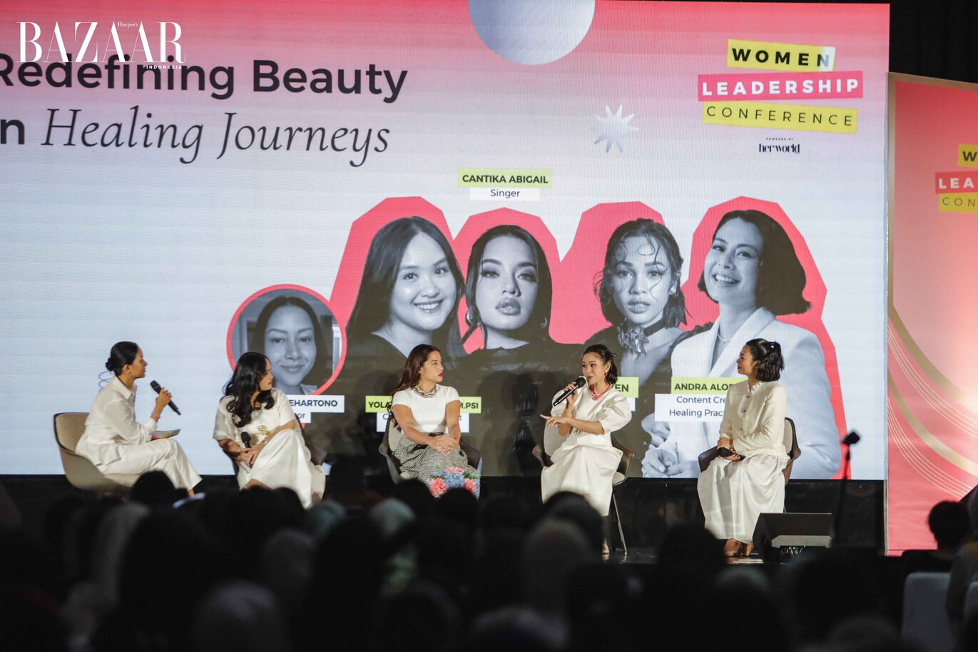 Acara dibuka dengan tema “Redefining Beauty in Healing Journeys” yang menyoroti perjalanan penyembuhan dan bagaimana makna kecantikan kini bertransformasi menjadi bentuk kekuatan baru. Para pembicara, salah satunya adalah Cantika Abigail hingga Andien berbagi kisah tentang menemukan kembali diri setelah menghadapi masa sulit, menjadikan pengalaman pribadi sebagai sumber empati dan kepemimpinan yang autentik.