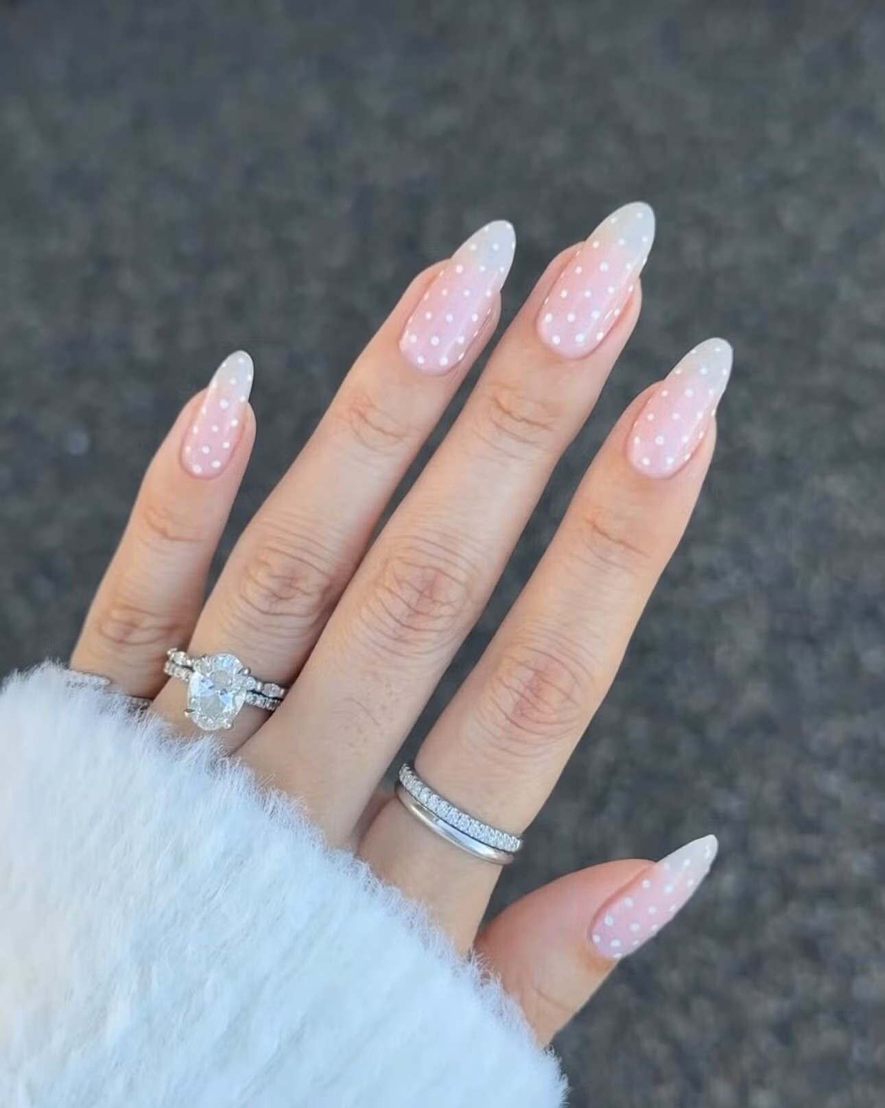 Harapkan tren polkadot di fashion merambah ke manicure Anda juga. Untuk tampilan manis ini, nail artist selebritas Zola Ganzorigt menggunakan OPI GELement “Glazed Donut” sebagai dasar dan OPI GELement “Snow AnGEL” untuk titik-titiknya.
