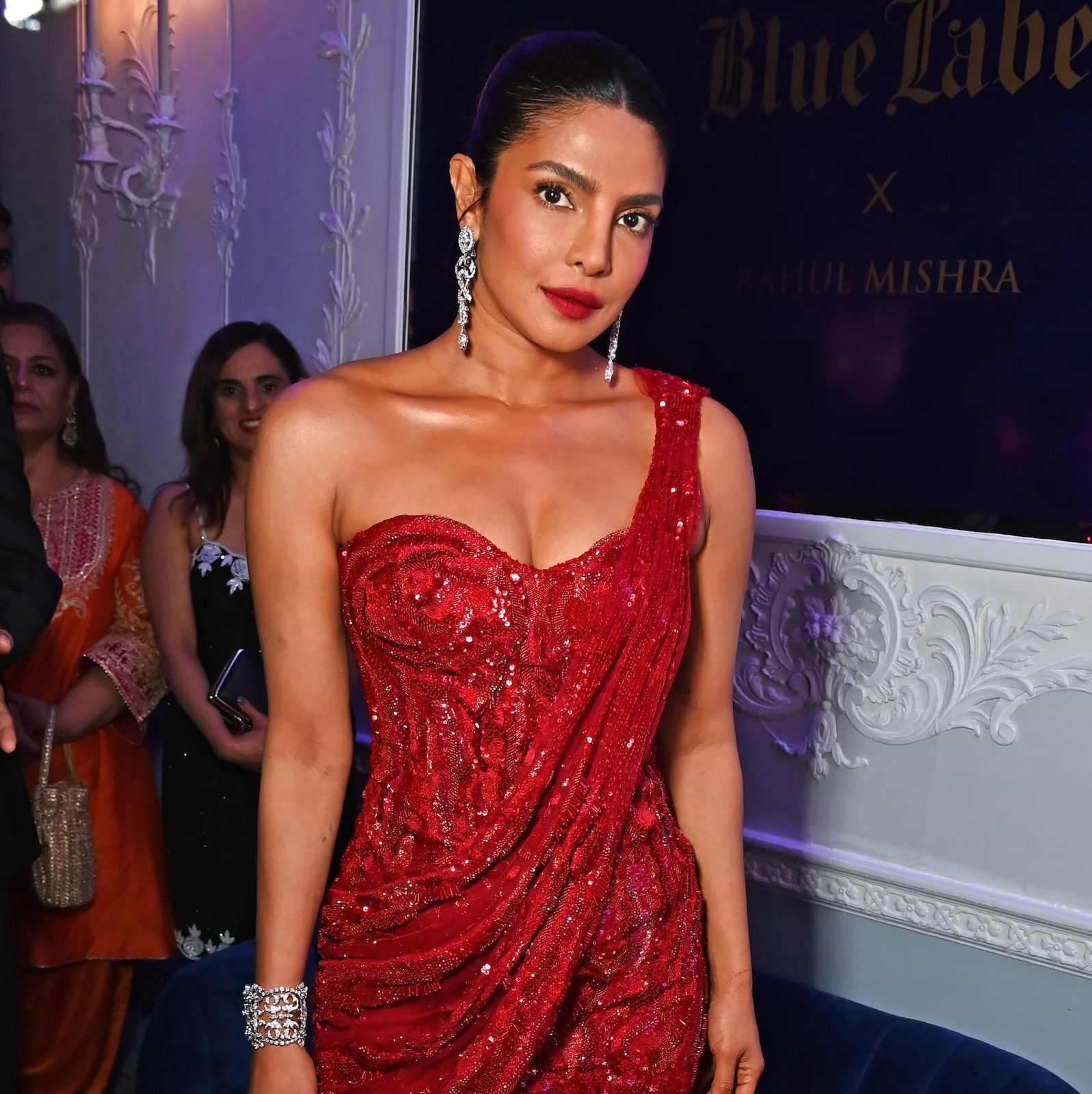 Untuk tampilan lipstik merah yang blurred, Priyanka Jonas menggunakan warna merah dari kolaborasinya sendiri dengan Max Factor, yang sayangnya tidak tersedia di Amerika Serikat.