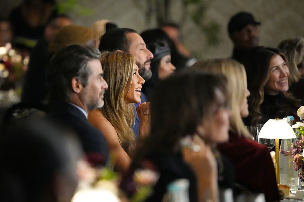 Pasangan tersebut juga tertangkap kamera duduk berdampingan selama acara, di sebelah sahabat lama Jennifer sekaligus mantan lawan mainnya, Adam Sandler.