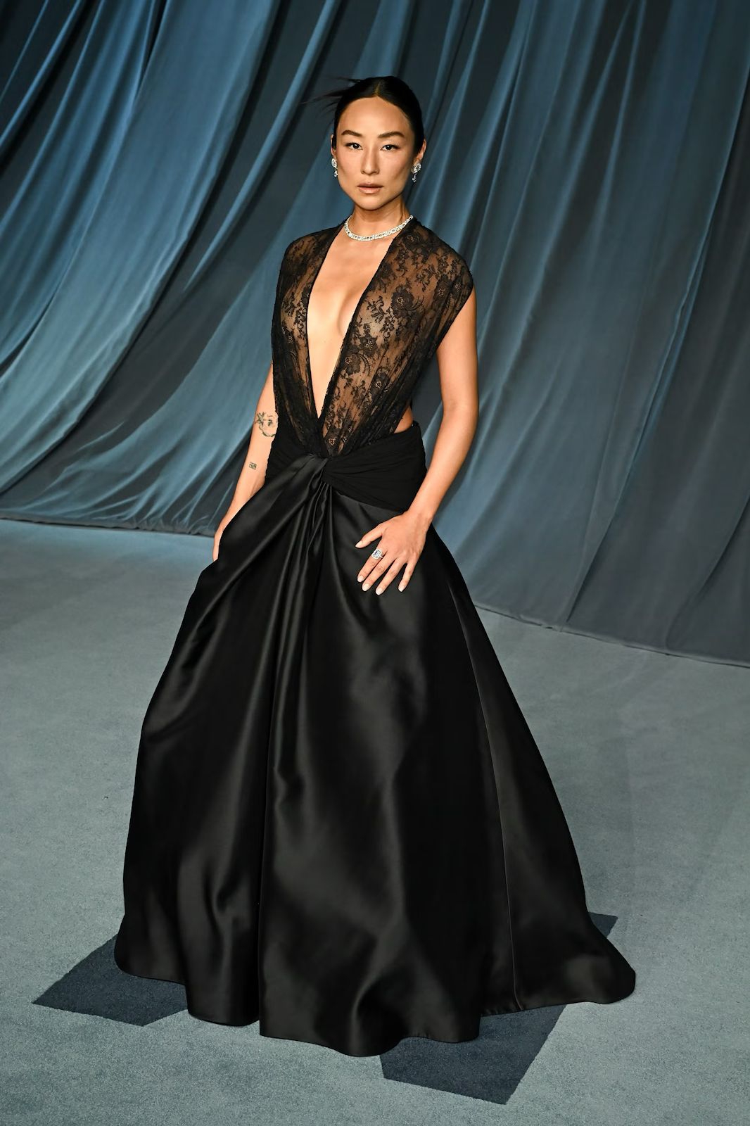 Dalam gaun Saint Laurent yang genit dan peek-a-boo di pesta Oscar Vanity Fair 2025.