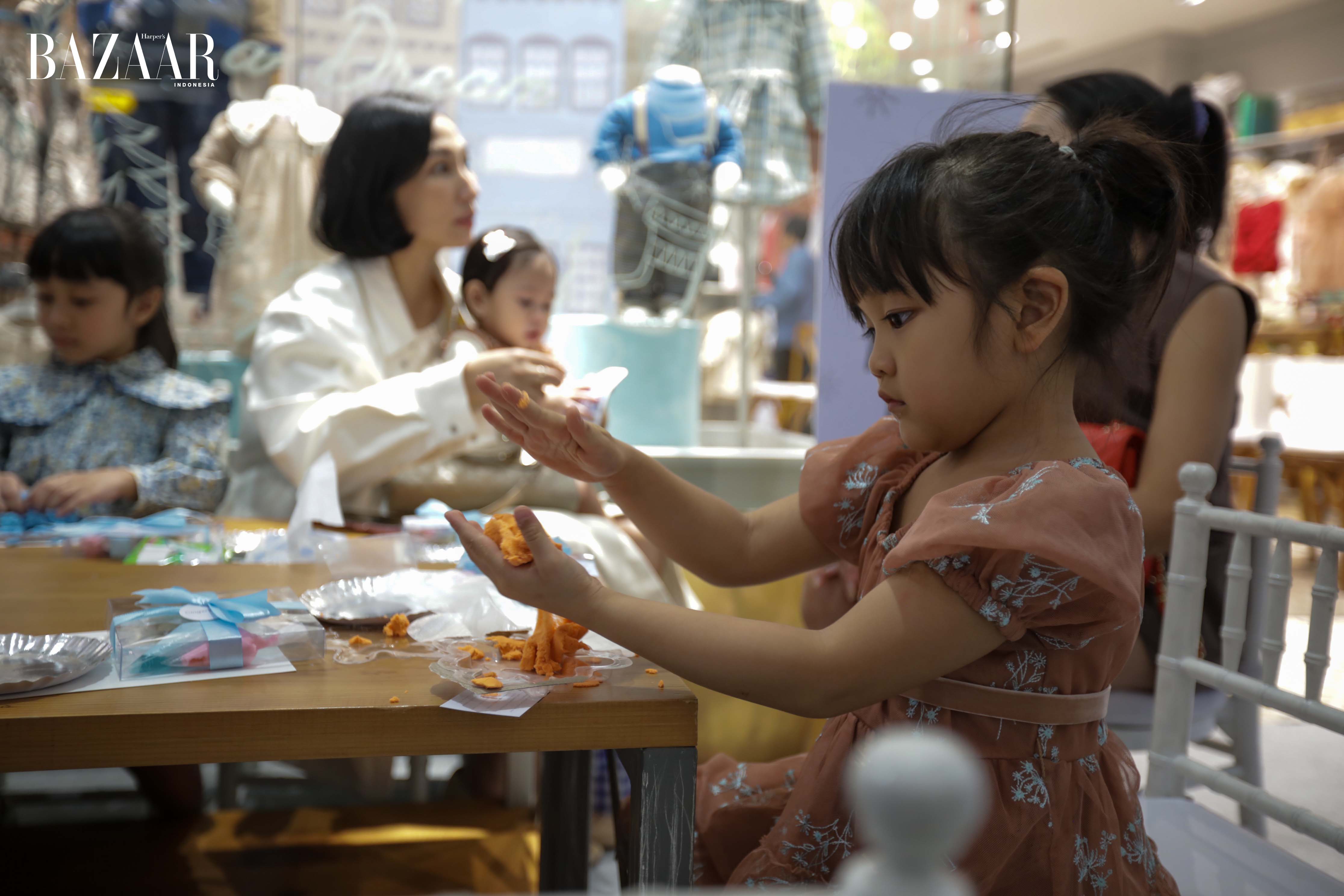 Lebih dari sekadar koleksi busana liburan, Woodland Wonders merayakan momen kecil yang hangat dan penuh rasa ingin tahu. Material lembut, warna natural, dan detail yang dipikirkan dengan cermat menjadikan koleksi ini sebagai ajakan bagi orang tua untuk menciptakan kenangan indah melalui pilihan busana yang nyaman dan penuh karakter. Acara dipandu oleh Assistant Managing Editor Yudith Kindangen dan berlangsung hangat sejak awal. Anak-anak tampak antusias mencoba claw machine berisi hadiah mainan, sementara aktivitas cookie decorating di meja depan menjadi hiburan manis. Suasana semakin lengkap dengan sajian canapé dan minuman segar yang menemani para tamu sepanjang acara.