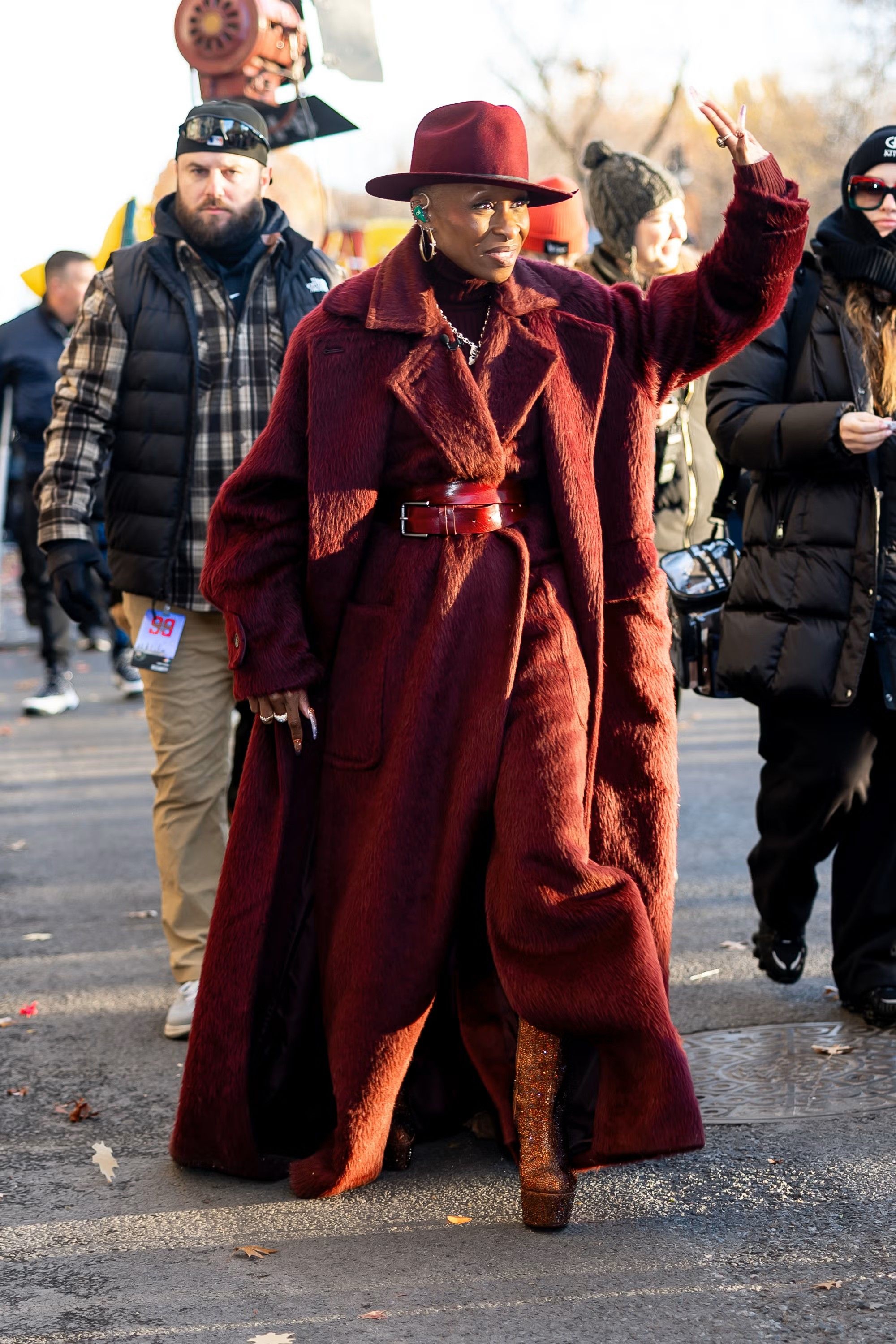 Cynthia Erivo tiba di Macy’s Thanksgiving Day Parade 2025 di New York City dengan tampilan bertema musim gugur yang sempurna, dipenuhi nuansa burgundy dan lapisan bahan lembut yang hangat.