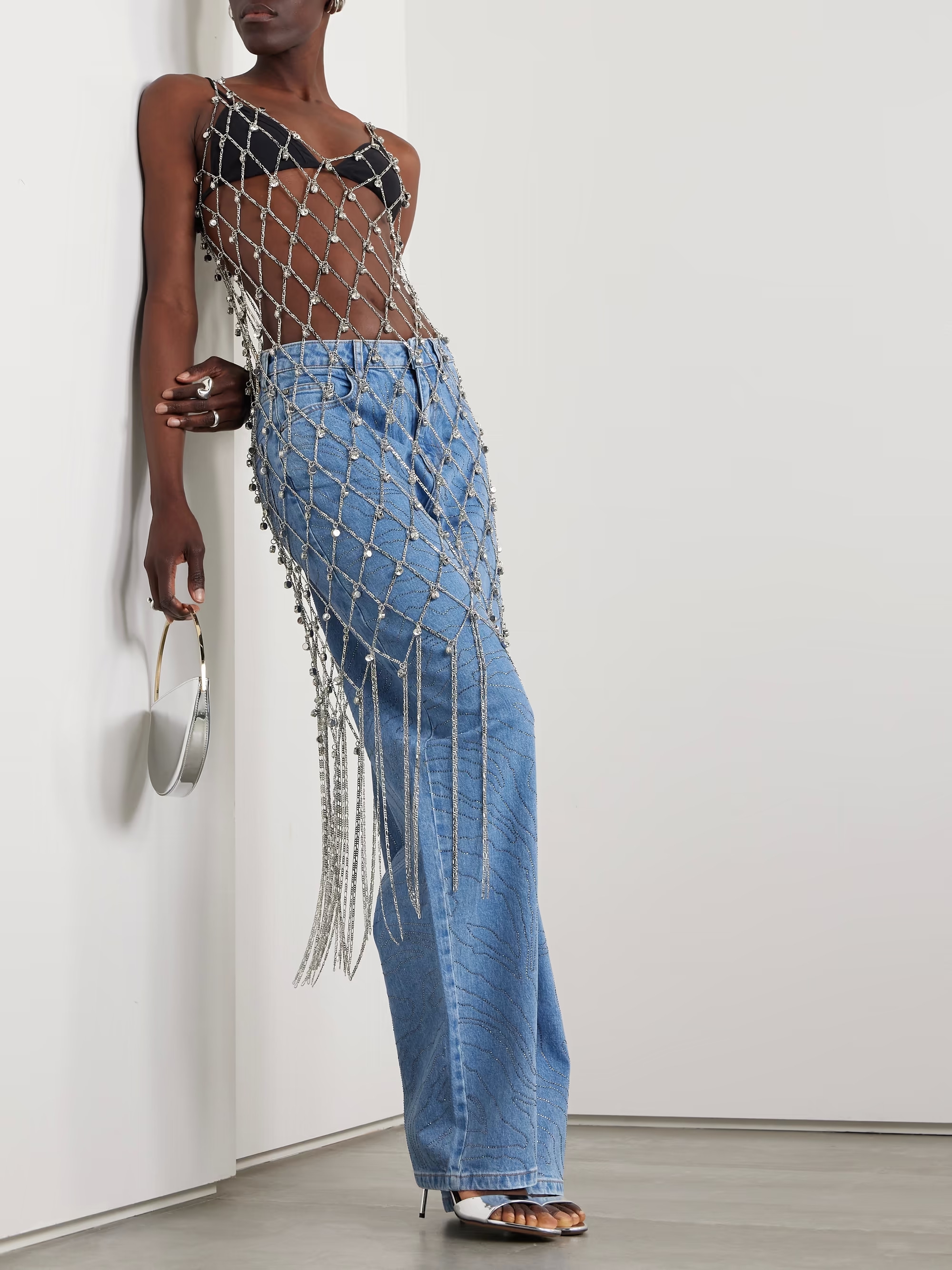 Jika Anda ingin tampil maksimal dengan aksesori di malam Tahun Baru, midi dress chainmail dari Rabanne adalah pilihan yang sempurna. Gaun ini terbuat dari bahan chainmail terbuka dan dihiasi dengan kristal berkilauan, memancarkan kemewahan dan kesan edgy sekaligus. Kenakan di atas jeans dan bralette untuk tampilan kasual yang chic, atau padukan dengan gaun hitam elegan untuk meningkatkan gaya Anda di pesta tahun baru. Apa pun pilihan Anda, gaun ini pasti akan membuat Anda bersinar.