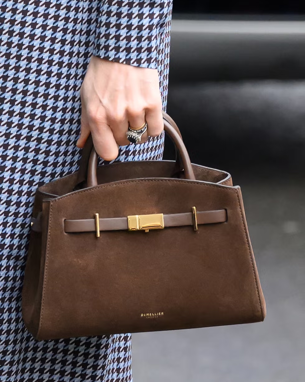 Berkat rancangan dari DeMellier, tas berbahan suede cokelat moka ini memberi sentuhan tekstur pada penampilannya. Meski berukuran kecil, garis lengkungnya yang elegan, handle kulit yang lembut, serta detail hardware emas langsung mencuri perhatian, menampilkan kualitas pengerjaan yang begitu prima. Sempurna untuk musim gugur, musim dingin, hingga masa peralihan di antaranya, tas ini dirancang dengan perhatian tinggi pada detail, mulai dari penutup magnetis untuk menjaga isi tetap aman, panel samping yang dapat diperluas saat membutuhkan ruang ekstra, hingga tali bahu yang dapat dilepas untuk fleksibilitas pemakaian.
