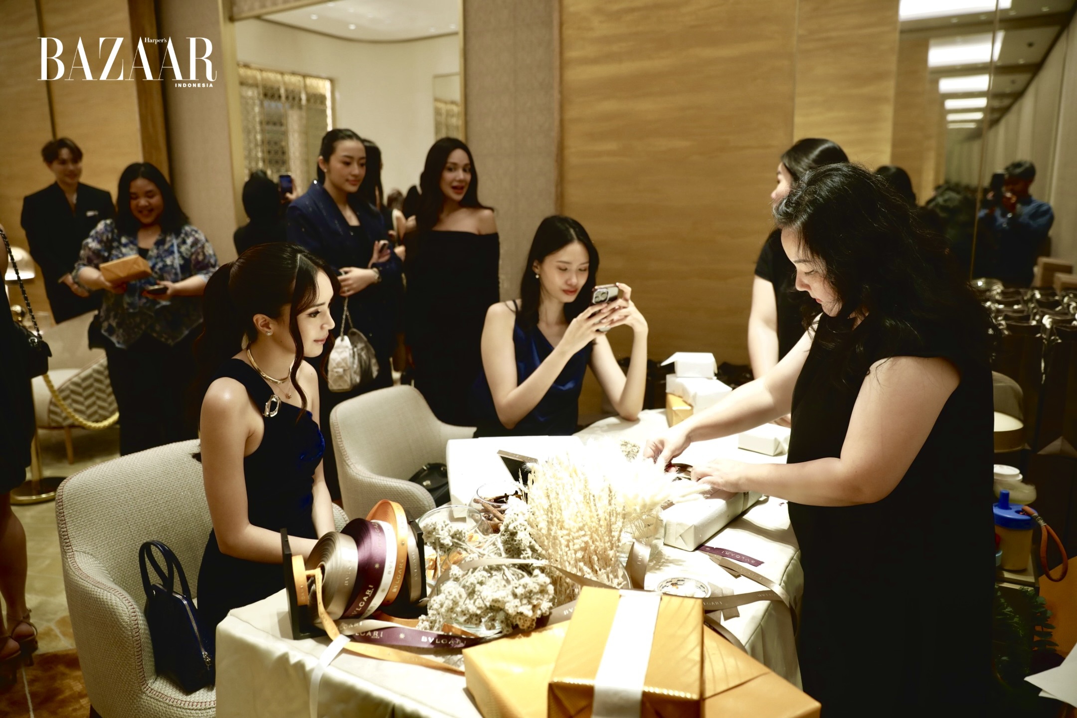 Kehadiran tamu lainnya turut mencuri perhatian, termasuk Pevita Pearce yang tampil dalam balutan gaun biru dengan paduan bot hitam serta tas Serpenti Cuore 1968. Ikon Serpenti Forever juga tampak menjadi pilihan favorit malam itu, dikenakan oleh para tamu-tamu Bazaar.