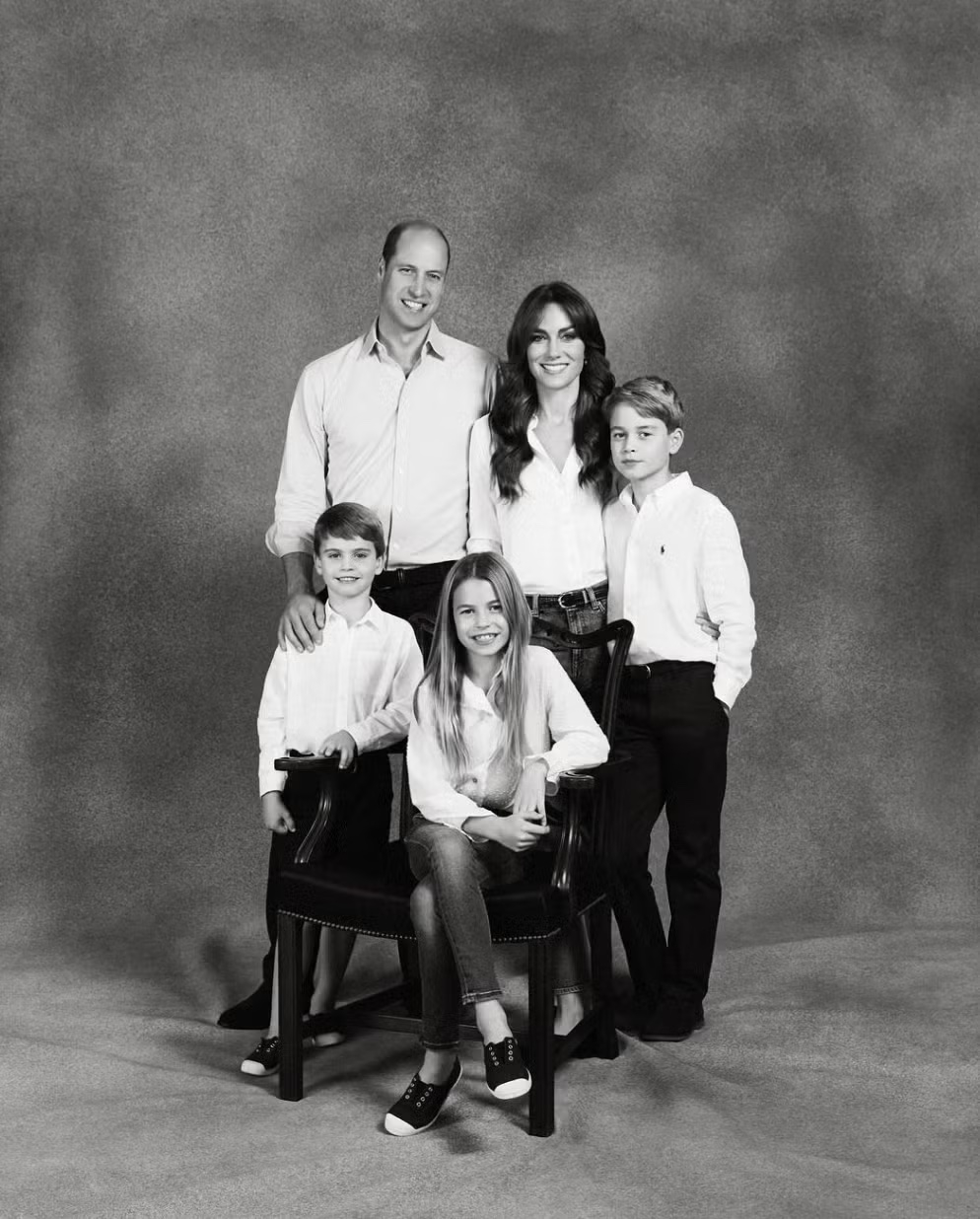 Pangeran William, Putri Kate, dan anak-anak mereka berpose untuk potret keluarga tahunan dalam balutan gaya rustic yang natural dan hangat.